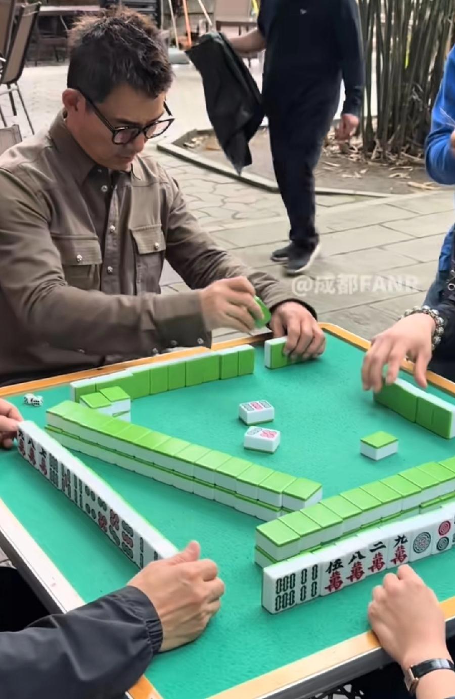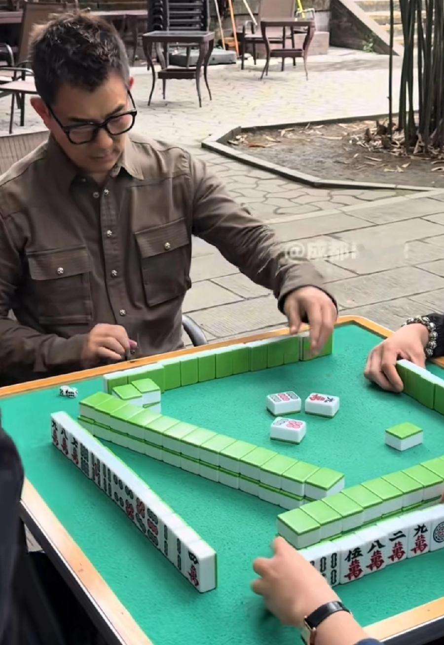 任贤齐在成都街头打麻将,有房子来休息度假了,三位牌友也是普通人,任贤齐非常接地气,爱上、融入了成都当地文化,吹着风、喝着茶、聊着天,悠哉美滋滋! 任贤齐59岁,本身不显老显年轻,打扮非常时尚,留着寸头戴着黑框眼镜,更显年轻了,看任贤齐打牌动作,像新手,香港也打麻将,全国各地打麻将方法都不一样,可能任贤齐平时也打得少,这是刚上手!祝福任贤齐永远这么年轻,晚年身体健康,生活幸福,常来成都、内地玩!