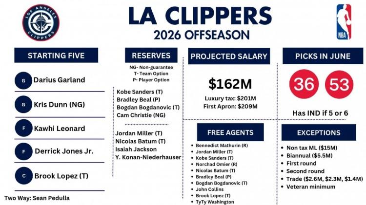 小卡可能打完了快船生涯最后一场比赛? 附加赛,快船末节13分惨遭勇士逆转,附加赛出局,无缘季后赛。很多人认为,小卡可能打完了快船生涯最后一场比赛。 本赛季,小卡出勤65场,场均得到27.9分6.4篮板3.6助攻1.9抢断,投篮命中率50%,三分命中率38%。 场均得分生涯新高,毫无疑问,本赛季小卡的表现,在全联盟也是前十级别。也证明了,健康的小卡,依然是联盟顶级球星。 只不过,快船无缘季后赛,今夏快船预计要迎来巨大的变动。 小卡与快船的合同还剩1年,最后一年年薪5030万美元。休赛期,小卡有资格和快船提取续约,最高可以签下一份2年1.269亿美元的合同。 不过,去年夏天,小卡的“阴阳合同”事件联盟一直未能宣布调查结果,原本说全明星后。现在,一个赛季都过去了,今夏怎么也得宣布结果了。 此前,多方猜测小卡最后一年的合同可能作废。而快船附加赛输给勇士后,快船随队记者Law Murray表示:快船认为联盟不会有严厉的处罚,也不认为小卡的合同会被废除。 但即便小卡的合同不会作废,快船似乎也没有与小卡继续续约的计划。快船很可能今夏交易小卡,开启重建之路。 从快船过去几个赛季的操作看,他们要保留2027年薪金空间以及阵容年轻化,就像此前只愿意给哈登1+1的合同,并且第二年还只有1380万美元受保障,最终交易哈登。 小卡也即将35岁,快船走年轻化路线和薪金空间清理的思路,再加上小卡过去几个赛季的出勤情况看,决定了他们不会续约小卡。 不续约的话,今夏选择交易小卡自然是正常的选择。 除了小卡,快船今夏还有不少球员合同面临选择。有到期的,有球队选项的。 今夏,马瑟林的合同到期,快船预计会续约,就看续多大的合同。科林斯的合同也到期了,大洛和巴图姆都是球队选项。 至于今夏的选秀,好消息是快船无缘季后赛,将获得乐透签,坏消息是,这个签属于雷霆,前四顺位的概率是7.1%。要是之后勇士赢了太阳,前四顺位的概率要涨到9.4%。 交易祖巴茨从步行者获得的2026年的首轮签,大概率是得不到的。