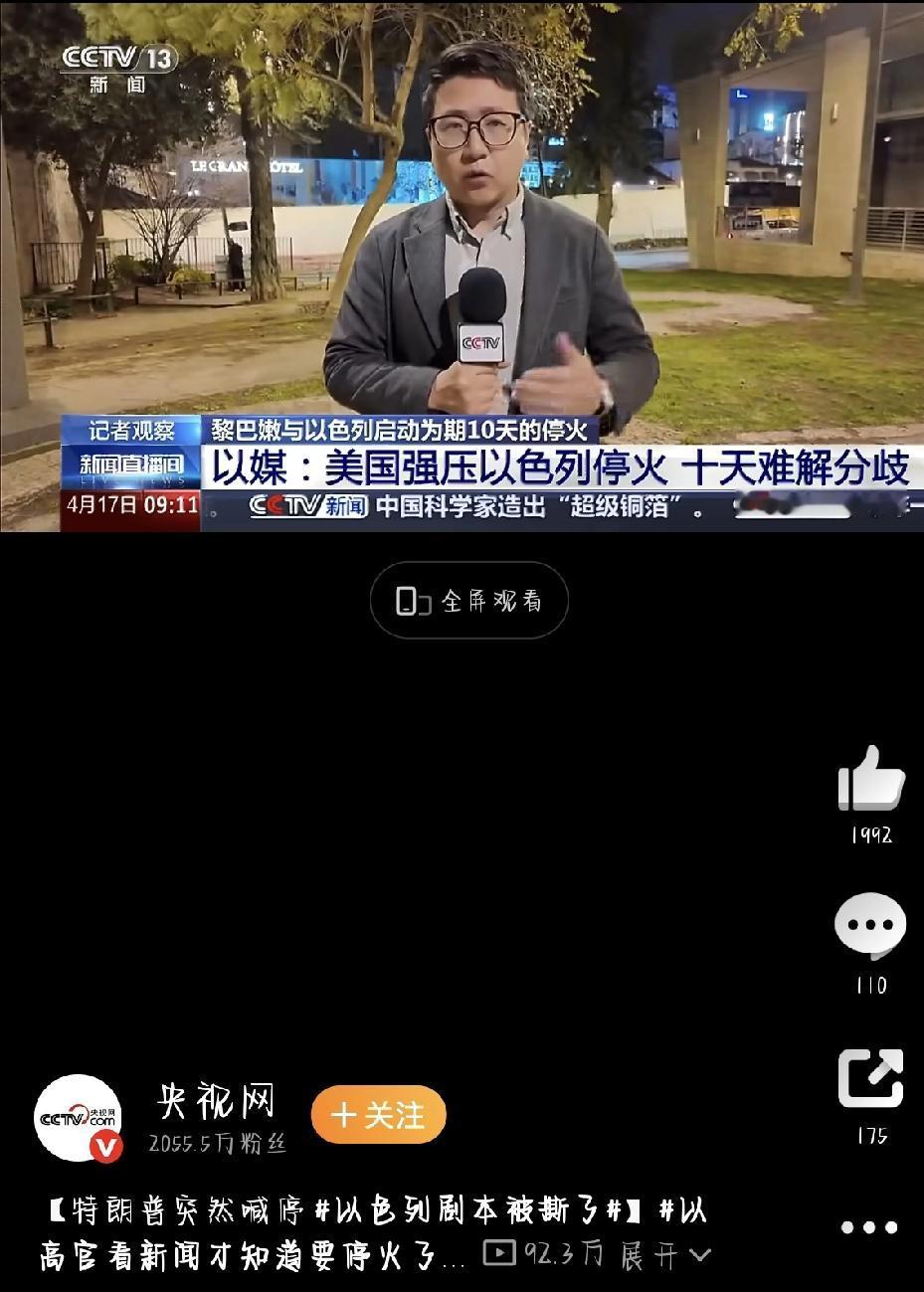 最近网上都在热议一个话题——以色列剧本被撕了。原本那个态度强硬、不肯轻易让步的以色列,突然就松口同意短期停火了。整个过程仓促又混乱,背后的真相一曝光,大家才看明白:这次停火根本不是以色列自愿的,完全是被美国硬推着走的。 其实之前就有以色列媒体放出风声,说在美国的压力下,以色列大概率会妥协,接受阶段性短期停火。可实际情况是,以色列内部压根没做好准备,高层更是措手不及,整件事从头到尾都很被动。 最离谱的是,很多以色列政府部长事先都没收到任何通知。大家不是通过内部会议了解停火计划,而是和普通网友一样,刷新闻、看报道,才知道国家要宣布停火这么重大的决定。一个关键决策,内部连点铺垫沟通都没有,足见这事来得有多突然。 按以色列的正常流程,涉及停火、停战这种国家级大事,必须召开正式内阁会议,集体商量、投票表决,才能对外公布。可这回,总理内塔尼亚胡完全跳过了流程,连个正经的内阁会议都来不及开。情急之下,他只能挨个打紧急电话通知各位部长,简单交代一下停火安排,全程没有商量的余地,就是单方面下命令。跳过正规流程,省掉集体讨论,这种反常操作,直接把以色列的无奈暴露得一清二楚。 以色列当地媒体也直言不讳地说,这次仓促停火,彻底撕开了以色列的强硬伪装。这不是以色列权衡局势后主动做出的理性选择,本质上是美国为了自己的利益,硬逼出来的结果。 最近中东局势错综复杂,美国当下有更重要的安排,需要和伊朗谈判沟通。要顺利推进谈判,就必须稳住中东局势,避免冲突持续升级。而以色列继续开火打仗,只会激化矛盾,严重影响美伊谈判的进度。所以为了给自己的谈判扫清障碍,美国不再惯着以色列,直接强势施压,要求它立刻停火。面对美方的强硬要求,以色列没有拒绝的底气,只能被迫妥协,硬生生打乱了自己原本的作战计划。 一直以来,以色列在冲突中态度强硬、行事果断,现在却变成了被动的一方,连国家关键决策都做不了主。看似简单的一纸停火协议,背后其实是大国博弈的缩影。这件事也清楚反映出,以色列高度依赖美国,很多时候都受制于人,关键时刻根本掌控不了自己的节奏。所谓的作战计划、战略布局,在美国的利益面前,说作废就作废。 这场突如其来的停火,不仅打乱了以色列的节奏,也让中东局势迎来了短暂的喘息。可以预见,一旦美伊谈判结束,局势很可能会再次发生变化。中东接下来怎么走,依然充满变数。 来源:央视新闻