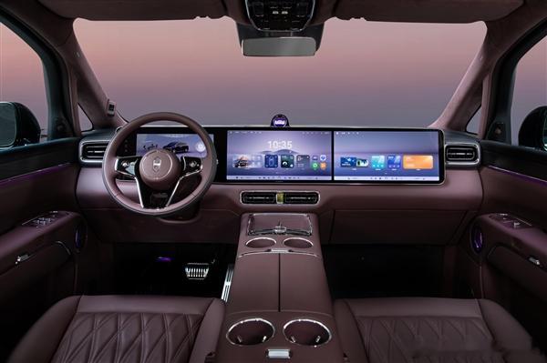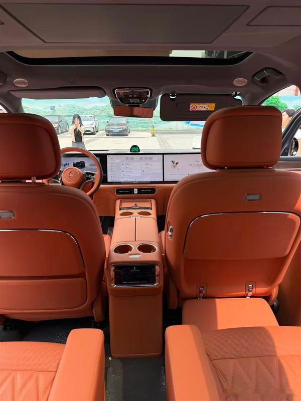 座舱交互:搭载全新三联屏——双17.2英寸3.4K横贯大屏(21:10比例,HDR Vivid®认证)+全液晶仪表,支持双NFC碰一碰投屏、自由卡片桌面;二排体验:独立航空座椅支持45°迎宾、90°观景、180°对坐;电动侧滑门支持手势关门;B柱设上下双拉手(兼顾儿童),配隐私玻璃+手动遮阳帘;后排娱乐:取消投影幕布,改用21.4英寸3K吸顶屏,8档倾角调节+NFC投屏;智能灯光:DLP智慧投影大灯支持迎宾灯语、泊车指引、行人让行;首发交互式侧门光毯,毫米波雷达感知用户靠近,自动开门+座椅联动;底盘操控:配双腔空气悬架(可抬升50mm)、后轮主动转向(±7°,转弯半径仅5.35米);智驾硬件:搭载华为896线激光雷达;动力续航:增程版为1.5T(105kW)+前后双电机,配37/53kWh电池(磷酸铁锂/三元锂),WLTC纯电续航158–223km。