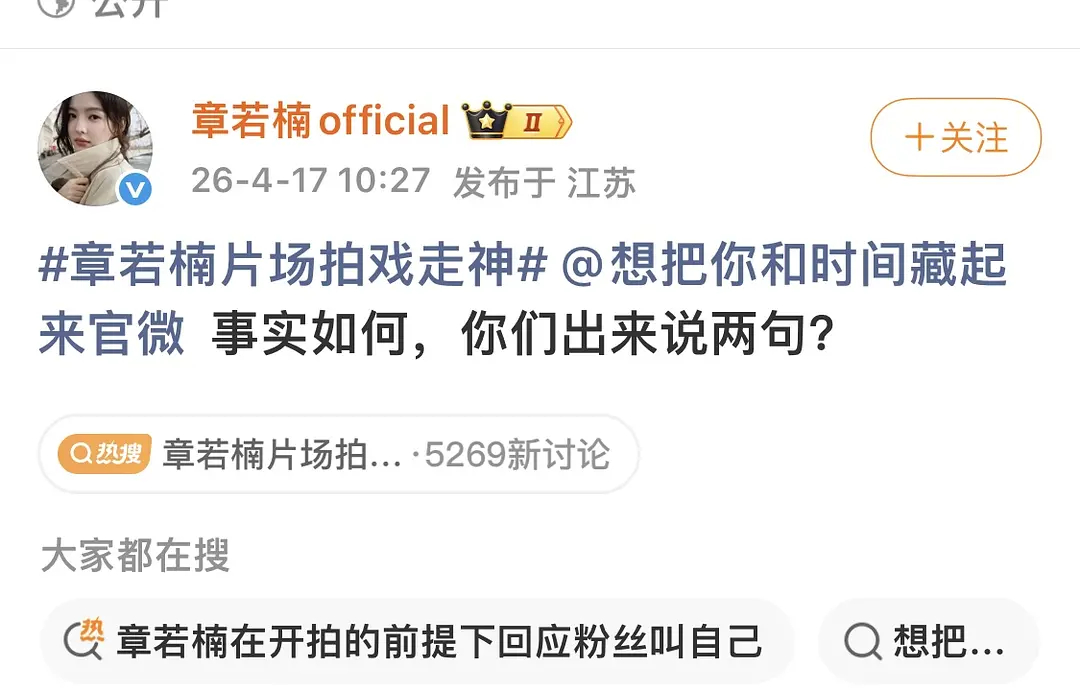 章若楠工作室因为热搜下场撕《想把你和时间藏起来》剧组了