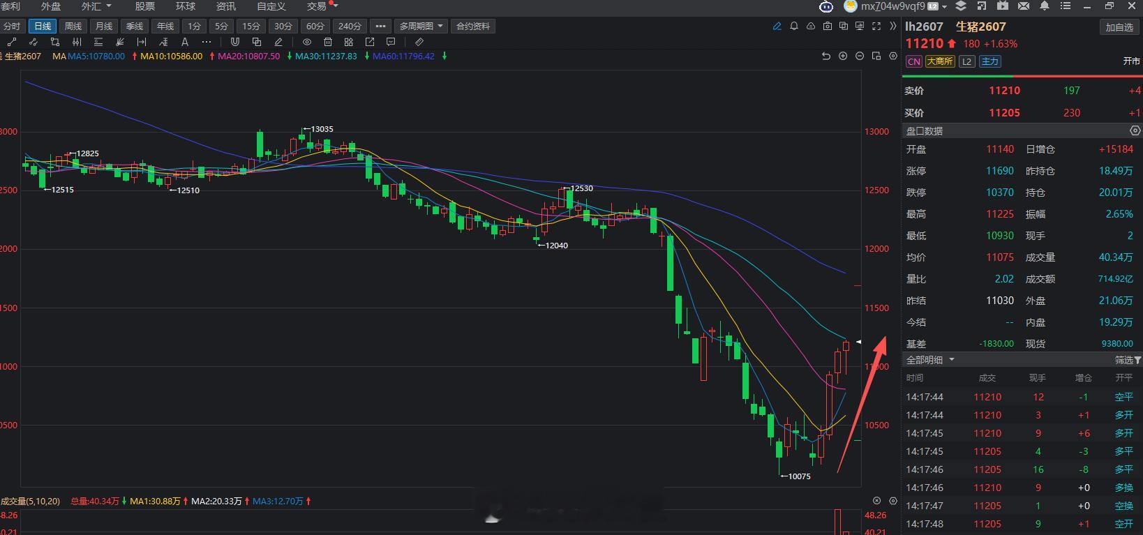 生猪连续下跌4年之后近期出现报复性反弹,三天上涨1000余点。