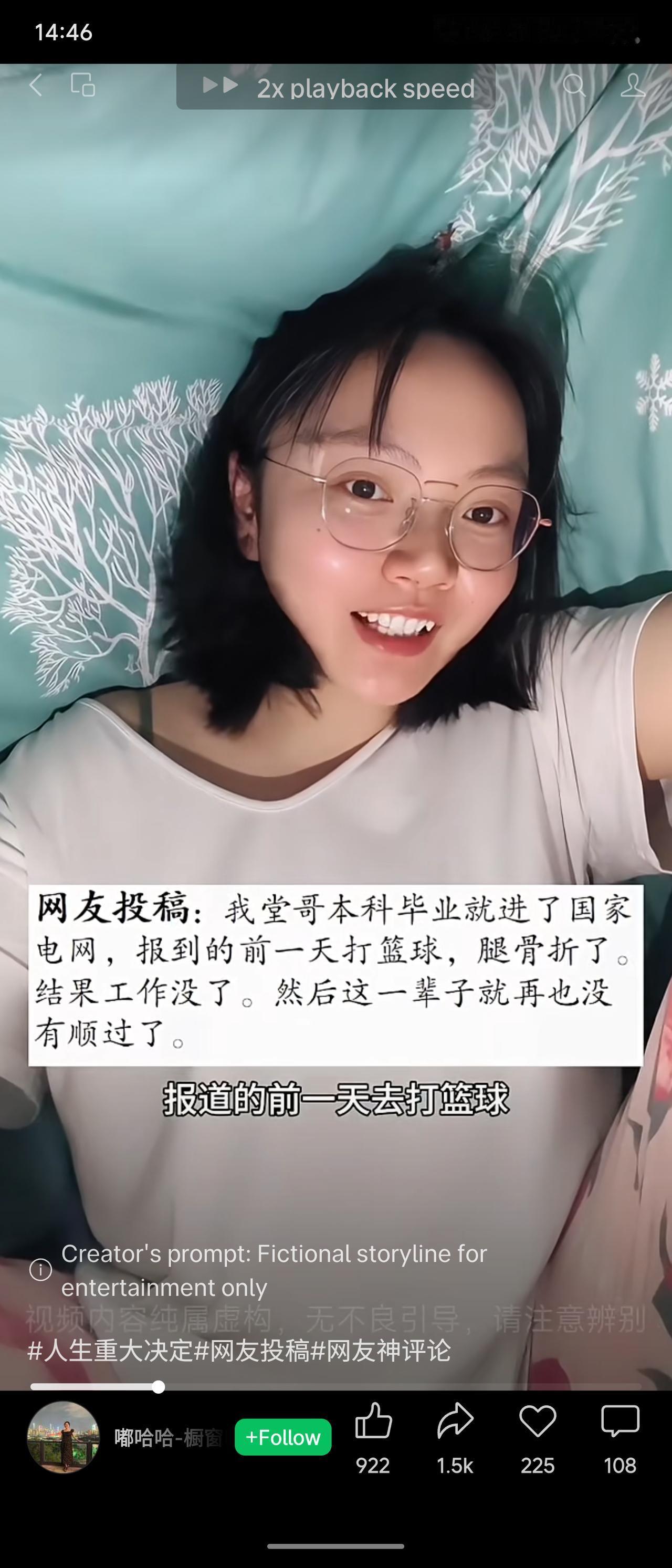网友投稿:堂哥本科毕业入职国家电网,报到前一天打篮球导致腿骨折,因此失去了这份工作。此后,他的人生一直不太顺利。