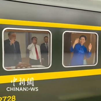 苏林携手夫人从南宁乘坐火车回越南!4月17日苏林临走前出席一个活动,然后携手夫人结束访华行程,不过返程并没有乘坐飞机而是火车。 值得一提的是夫人与送行人员告别时,双手对着镜头挥手,给人一种依依不舍的既视感,其实送行人员也一样,这一动作庄重又温情,既是对送行人员的致意,也是对现场与屏幕前众人的回应。 俗话说:送君千里终有一别!越南夫人挥双手告别,很真诚又不张扬,既体现了对送别者的尊重,也暗含着感谢与牵挂,而且这也是离别时无声的表达方式。