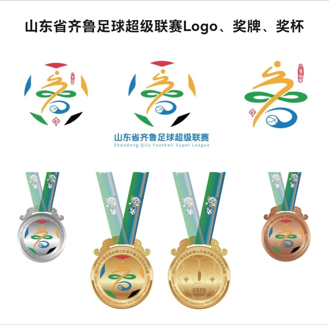 2026齐鲁超赛冠军奖杯、超赛Logo、冠亚季军奖牌、比赛版用球。4月18日晚上