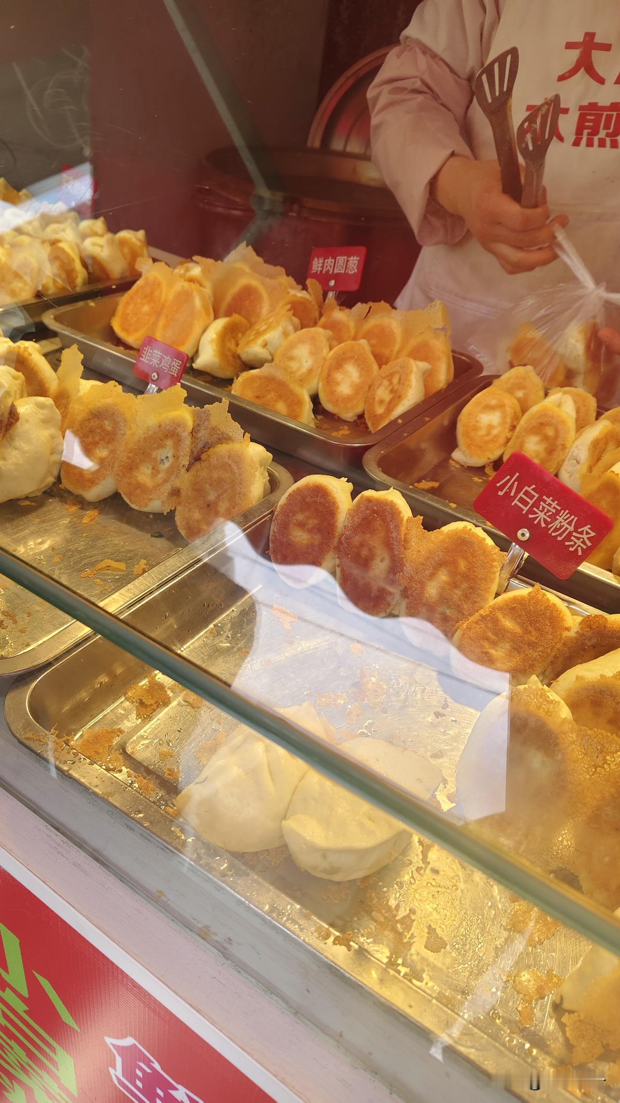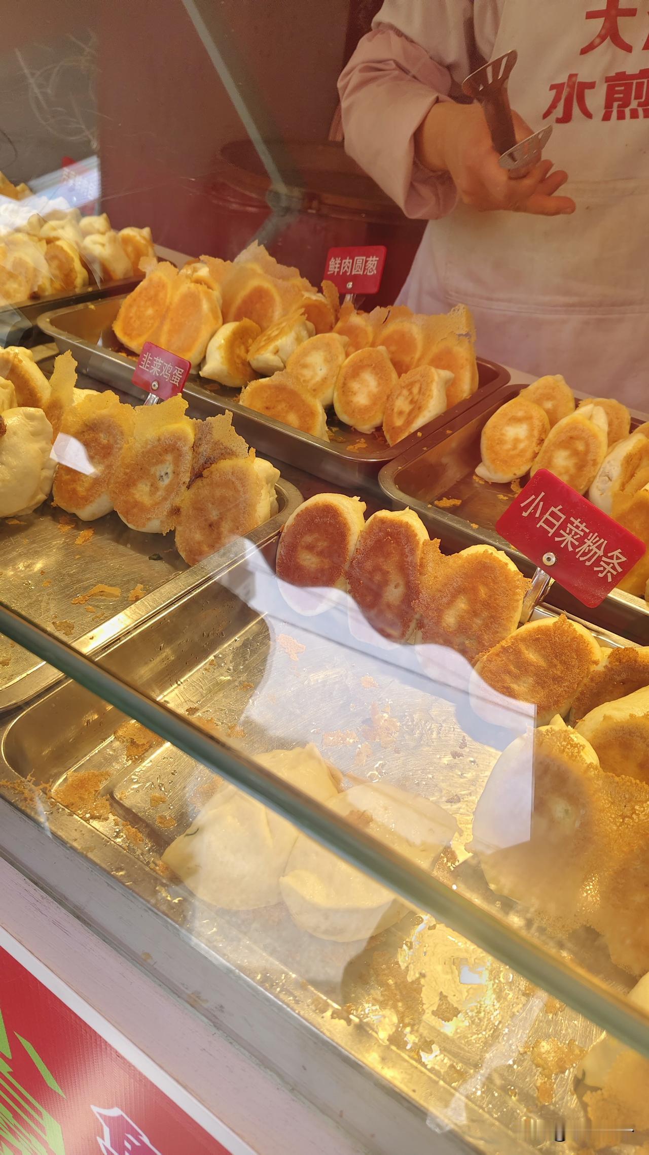 只要看到水煎包不管实际买不买肯定都会停下脚步端详一会,这不西山水库道边开了一家店我又凑过去看看热闹,他家品种不少,白菜肉,海菜肉,圆葱肉,韭菜鸡蛋,芹菜肉,酸菜肉,萝卜丝虾皮的,过去就单纯的圆葱肉也吃不够,现在品种是真多呀。十块钱七个好像也不觉得便宜。