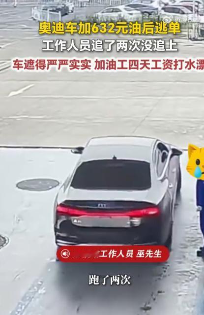 4月11日,安徽合肥,一辆奥迪车加632元油后逃单,工作人员追了两次没追上。加油站工作人员巫先生称,那个车子完全就是黑的,感觉是故意的,挡得严严实实,已经报警了。加油员追了2次没追上,632元是她自己付的,等于她四天的工资打水漂。此事引发热议 穿着工装的加油员小巫刚刚给一辆货车加满柴油,抬头时,一辆黑色奥迪缓缓驶入车位。 车身擦得发亮,却几乎看不清车内情况——车窗贴着深色膜,像一块沉默的镜子,把外界的目光全都挡在外面。 车停得很干脆,司机没有多余动作,只是按下油箱盖。小巫熟练地走上前,询问加多少。对方语气平静:“加满。” 油枪插入油箱的一刻,计价器开始跳动。数字从几十一路往上攀升,像无声滚动的压力。 632元。 在加油站,这个金额并不罕见,但当它落在一个普通员工的工资账本上时,却显得格外沉重。 小巫心里其实已经有了职业性的预判——这种贴膜很深、车内不露脸、话少的人,有时候会让人多留个心眼。但程序还是程序,她不能拒绝加油。 油加满后,她照例收回油枪,提示付款。 对方点点头,拿着手机走向车头,看似要扫码。小巫也稍微放松了一点,转身整理设备。 但几秒后,发动机的声音突然变了。 不是启动,是蓄力。 那辆奥迪几乎没有犹豫,车头一转,直接从加油位冲了出去。轮胎碾过地面,带起一阵短促的摩擦声。小巫愣了一下,第一反应不是害怕,而是本能地追了出去。 “还没付钱!”她一边跑一边喊。 同事也反应过来,从另一个方向冲出来。但那辆黑色车已经冲上出口,像是早就计算好了路线,没有任何停顿。 第一次追赶,只追到站口。 车尾灯一闪,拐入主路,消失在车流里。 站里一下安静下来,只剩下油枪归位时“咔”的一声轻响,显得格外刺耳。 小巫站在原地,呼吸有些急促。她不是第一次见到逃单,但每一次都让人不舒服——那种不是损失钱的问题,而是被“无视”的感觉。 很快,站长赶来调监控。画面里,那辆奥迪的车牌被刻意遮挡得并不清晰,车窗漆黑,几乎看不到驾驶者的面容。整段过程不到一分钟,却像早已排练过。 报警电话打出去的时候,小巫的手还在微微发抖。 但事情并没有就此结束。 大约过了十几分钟,站里又出现了一阵骚动。有人在远处发现了那辆车的踪迹。小巫和另一名同事再次跑出去,试图拦截。 她甚至一度跑到了路口边缘,挥手示意,但车辆没有减速,反而加速离开。 第二次追赶,依然失败。 这一次回来后,小巫没再说话,只是靠在收银台边,盯着那台仍在跳动的计价器记录屏。632元,这个数字像被钉在那里,变成了一种具体的重量。 在加油站的制度里,这种“跑单”通常会被先行垫付处理。也就是说,钱会先从员工或班组的绩效中扣除,再视情况追责或申诉。 换句话说,这632元,很可能直接落在了她自己身上。 四天工资。 有人后来问她当时怎么想,她只是说了一句:“那一刻没想钱,就是觉得挺憋屈的。” 傍晚时分,事情开始在本地群里扩散。监控截图被转发,黑色奥迪、遮挡车牌、逃离加油站,这几个关键词迅速拼成一个情绪出口。 评论区的火气来得很快。 有人直接质疑:“开奥迪还逃几百块油钱?” 也有人更激烈:“不是没钱,是没底线。” 还有人把矛头指向制度本身:“为什么员工要先垫?这不是把风险丢给最底层的人吗?” 但在更复杂的声音里,也有人冷静提醒:车牌被遮挡说明对方是有意规避追踪,这已经不只是“占便宜”,而是带有明显的逃避行为,甚至可能涉及违法。