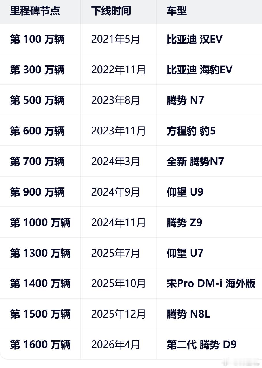 比亚迪第1600万辆新能源汽车下线 全球首台第二代腾势D9荣耀登场 看看比亚迪下一步重点车型是什么
