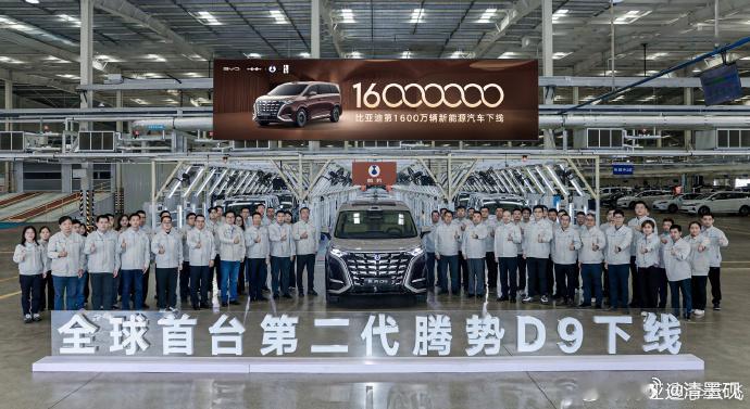 比亚迪第1600万辆新能源汽车下线全球首台第二代腾势D9荣耀登场看看比亚迪下