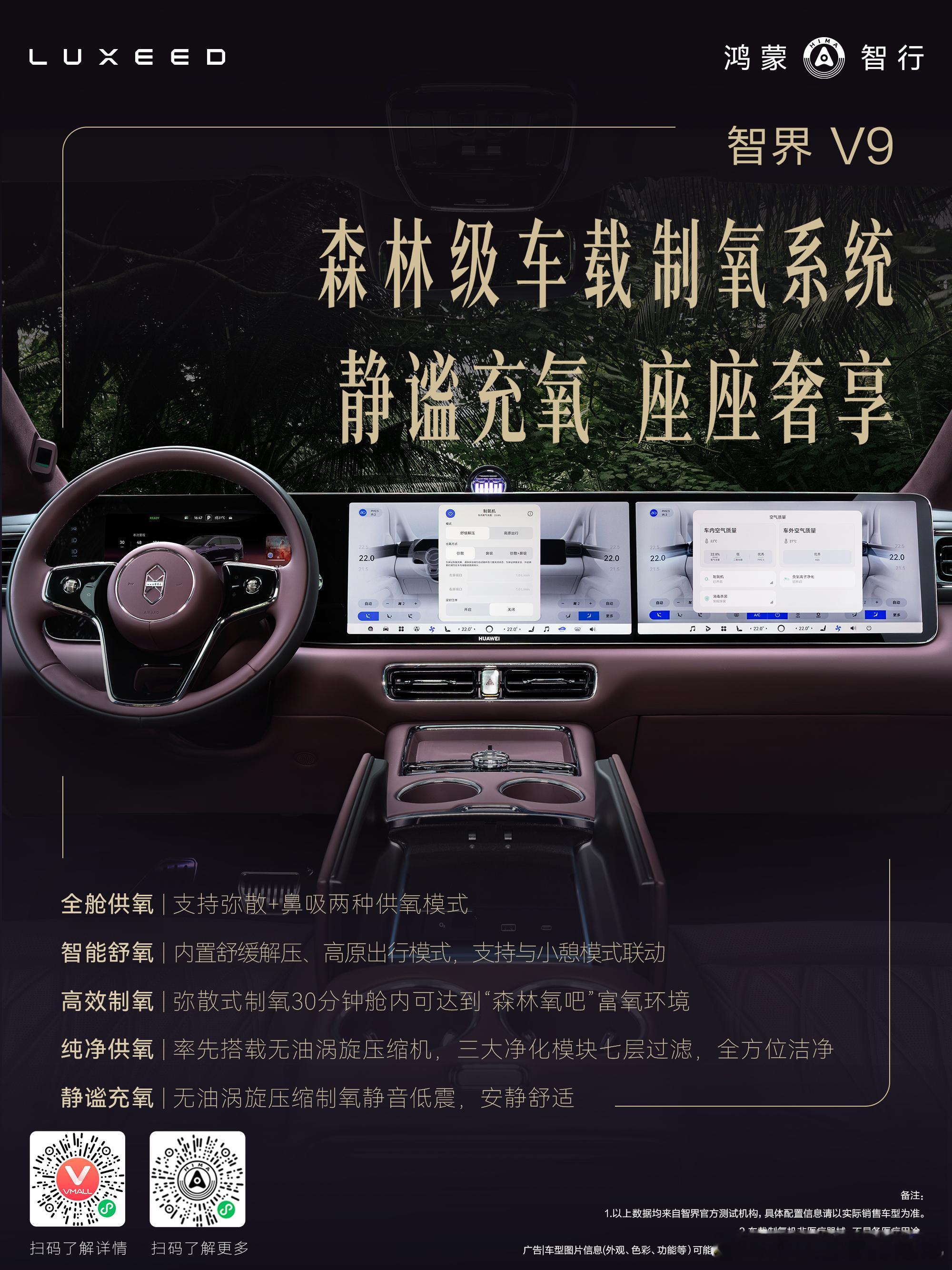 智界v9 的车载制氧系统,在一些高海拔地区还是很有优势的。这个技术应该后续在旗舰车型上成为标配