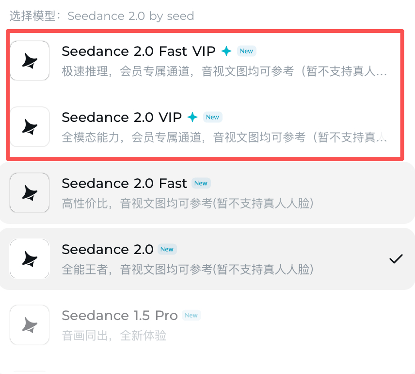 即梦Seedance 2.0生视频开始只有两个模型,开个高级会员(每月15000积分)使用时候能同时并行20个任务。后来出了标红的两个新模型,就把原来两个模型的任务并行个数从20个降到上周的5个,然后降到今天的1个。逼着用户去用新的VIP模型,新模型积分消耗是下面两个普通模型的10倍,并且高级会员还不行,得开VVIP会员。你高级会员用去用新VIP模型跟普通用户没区别,花10倍的积分得排队几个小时。