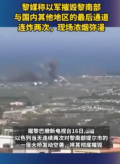 没见过这么缺德的,之前双方都谈好了,要临时停火,可谁能想到,就在停火要生效的前几个小时,以军突然翻脸,二话不说就开炸! 他们炸的不是别的,是黎南部提尔市利塔尼河上的一座桥。而且不是炸一次就完,是连着炸了两次,摆明了就是要把这座桥彻底炸废,一点补救的余地都不留! 可能很多人不清楚,这座桥对黎南部的老百姓来说,那就是命根子!它是黎南部和国内其他地方唯一的连接通道,说白了,老百姓要吃的、要穿的,得靠这座桥运进来。 这一炸可倒好,桥直接炸成了一堆废墟,现场浓烟冒得老高,遮天蔽日的,啥都看不见。 一瞬间,整个黎南部就成了一座孤立无援的“孤岛”,老百姓彻底被断了生路,停火本来是好事,是给双方台阶下,也是给老百姓留条活路,结果趁这个机会赶尽杀绝?这桥又不是什么军事设施,炸它伤不到敌人,受伤的全是那些手无寸铁的平民啊! 炸一次不够,还连炸两次,这心思也太歹毒了,就是不想让老百姓有活路,不想让黎南部和外界有任何联系。 物资进不来,伤员出不去,接下来老百姓吃啥喝啥,受伤了没人治,想想都让人揪心。 用炸断民生通道、伤害无辜百姓的方式,根本解决不了任何问题,只会让仇恨越来越深,让更多人陷入苦难。 真心希望战火能早点停,也希望被困的黎南部老百姓,能早日走出困境,能重新有一条生路可走。 信息来源:观察者网《黎媒称以军摧毁黎南部与国内其他地区的最后通道连炸两次,现场浓烟弥漫》2026-4-16