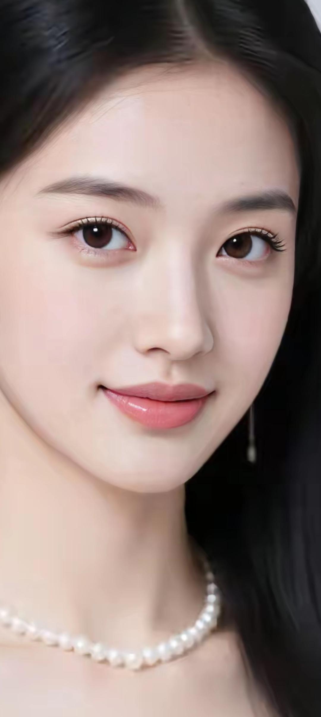 温柔甜美的少女,白皙肌肤,大眼睛,红唇,黑发,清新自然。