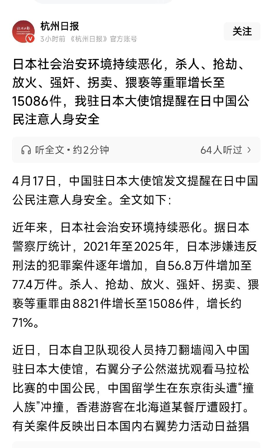 外交部重要提醒:日本治安环境持续恶化,五一期间,中国人不要前往日本,提醒在日的中国人一定要注意人身安全。劝日本不要搬起石头砸自己的脚。
