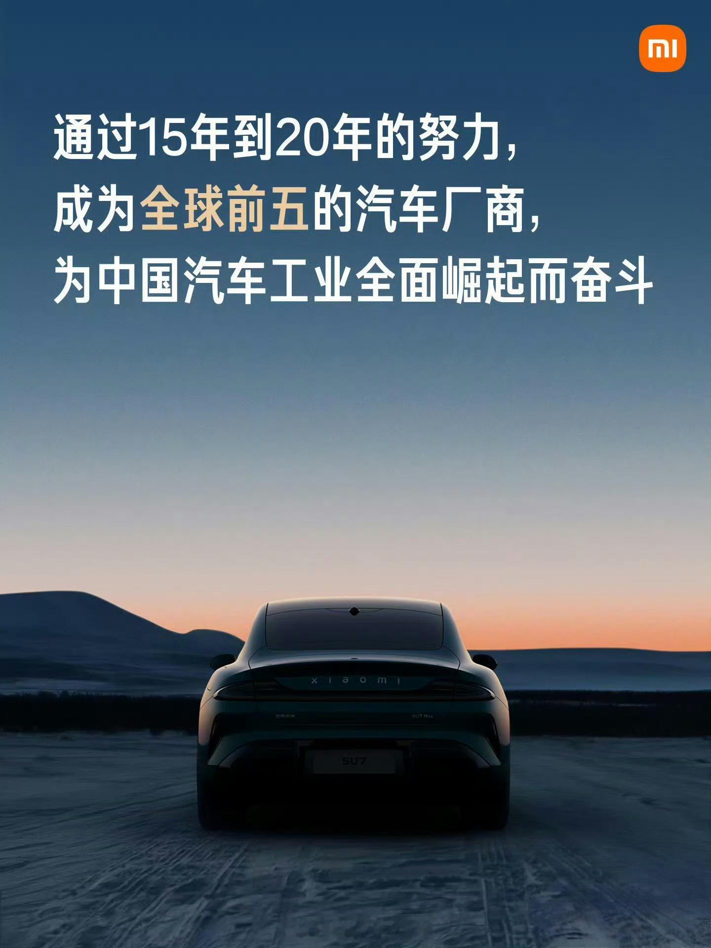 小米汽车的目标始终明确,成为全球前五车企,对标保时捷和特斯拉的技术与品质标准。