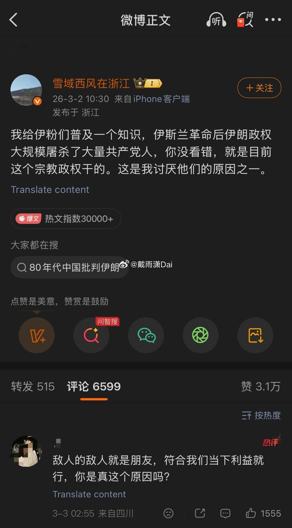 财经博主仇中反共一辈子,突然就开始关心伊朗共产党的死活了。什么心思明眼人都看得出来。