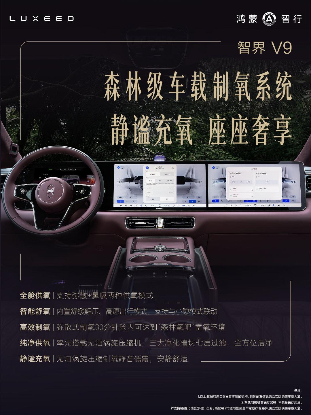 第一台搭载制氧机的MPV来了作为鸿蒙智行旗舰MPV,智界V9在MPV品类中首发搭载车载制氧系统,把“森林氧吧”搬进车内。智界V9座舱还可以养生语音一键开启,弥散制氧模式30分钟打造富氧环境,长途驾驶更提神、更安全。8-10L/min超大排量,弥散+鼻吸双模式,可以满足日常与应急吸氧需求。行业首发无油压缩机搭配七层净化,每一口都纯净安静。从“能制氧”到“会智氧”,智界V9重新定义健康座舱新标准。