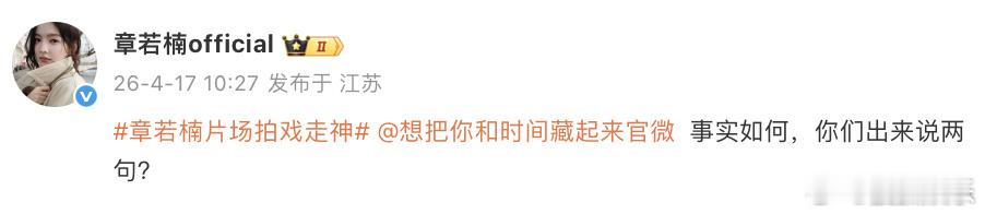 剧组否认章若楠拍戏走神 今日,章若楠片场拍戏走神相关舆论发酵。随后,章若楠工作室就此事发文喊话《想把你和时间藏起来》官博:“事实如何,你们出来说两句?”