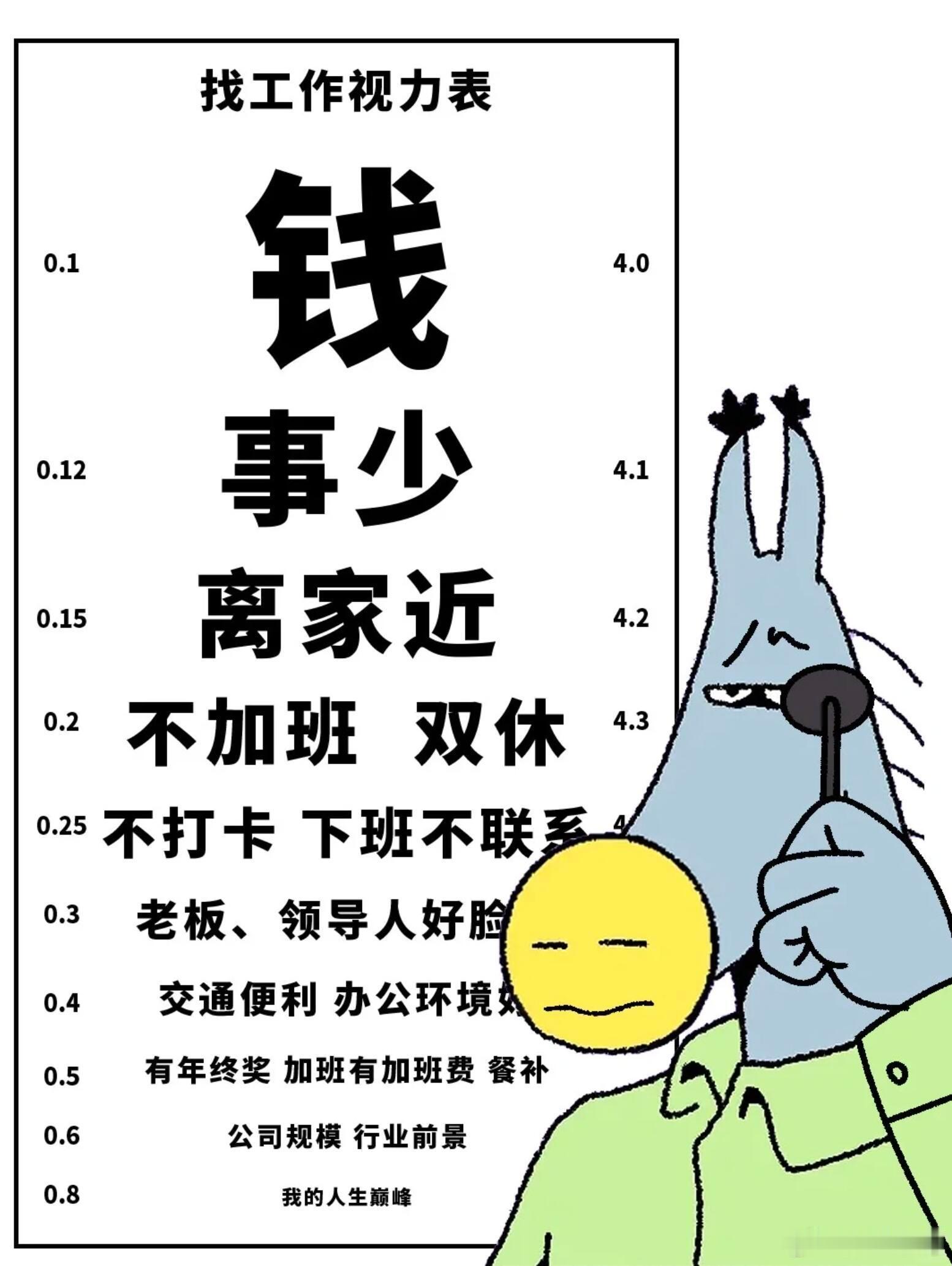 专属打工人的视力表找工作视力表背下来看的是我的视力吗?看的难道不是我的职业规划和期待吗?谁不想找个离家近,钱多,事少的工作啊越想要的越看不清啊······