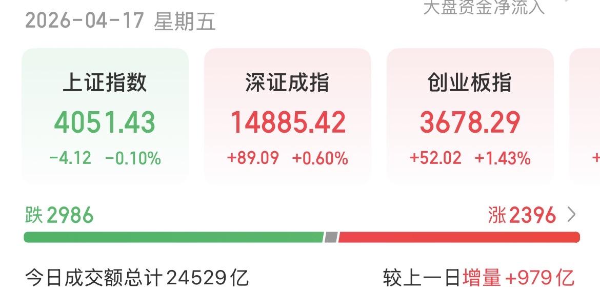 (4月17日下午) 今天是股指期货交割日,各大指数几乎都会是红的,上证指数也只是微跌了0.1%! 那么是不是意味着机构认为未来的一个月,上涨的概率更大,不然早就砸盘跑路了! 资金流向上,进一步证实了这个猜想,机构全天的净流入接近其他三路资金合计流出的两倍,跑的基本都是一些立场不坚定的散户! 今天光伏和机器人都出现明显的异动,这可能是一个信号,希望主力别让我等太久!今日A股 股民交流