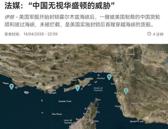 法媒表示,毫无疑问,中国无视了华盛顿的威胁!在中国油轮“富星”号通过霍尔木兹海峡之后,4法新社刊文表示,美国军舰开始封锁霍尔木兹海峡后,一艘被美国制裁的中国货轮顺利驶过海峡,未被拦截,这是美国实施封锁后首艘穿越海峡的货船。 公开航运数据和路透报道显示,美方4月13日启动的封锁,核心对象是进出伊朗港口的船舶;到14日,至少8艘船仍穿越水道,其中包括3艘与伊朗贸易链有关、但目的地并非伊朗港口的船只。也就是说,海峡并未被“一刀切”锁死,真正发生的是选择性执法。 这恰恰是这起事件最有分量的地方,很多人把“通过”理解成单纯的硬碰硬,我觉得不够,因为美国中央司令部自己给封锁写下了边界:对所有国家船舶“公平执行”,但“不妨碍”前往非伊朗目的地的中立过境。那艘被外界高度关注的中国关联船舶,并不是神秘地闯过去的。 路透提到,相关受制裁油化船装载约25万桶甲醇,自阿联酋装货后穿越海峡,船东曾因与伊朗交易被美方列入制裁名单;但由于它此行并非驶向伊朗港口,所以没有落入美方封锁的最直接打击面。这不是一句“无视威胁”就能概括的,它反而说明规则口径、航线设计与政治博弈已缠在一起。 封锁首日有6艘船按美军要求掉头,但整体通行并未完全停摆;战前霍尔木兹日均通行量在130艘以上,而现在仍有部分非伊朗油轮继续向中国、印度、马来西亚、越南等亚洲市场输送原油。海峡的意义,不在于某一艘船通不通,而在于谁能维持“有限可通行”的局面,谁就握住了对油价、运费和保险费的定价权。 所以这件事对中国的启示,绝不是“只要胆子大就能过”。真正的压力会慢慢体现在看不见的地方:战争险保费维持在每周数十万美元级别,承保条件48小时一审;国际能源署也已启动更大规模协调,之前更同意释放4亿桶储备以缓冲冲击。 表面上货还在走,实际上每一程都在变贵,每一次挂靠都在增加政治溢价。再往深处看,霍尔木兹争夺的从来不只是眼前几条船,而是未来十几年的能源路线图。 路透评论援引测算称,海峡正常时期承载约全球五分之一油气出口;如果长期高风险持续,海湾国家就会更认真地推动绕开海峡的新管道。已有测算认为,建设通往阿曼港口的替代通道可能需7年、总成本约550亿美元。 海上通道一旦不再稳定,陆上替代就会从“备选项”变成“战略刚需”。 也因此,这次中国关联船舶通过,意义不在于谁喊得更凶,而在于它把美国单边封锁的现实困境照了出来:真要完全卡死,伤到的不只伊朗,也包括盟友进口商、航运公司和本已敏感的国际油价;可若留下缝隙,外界又会立刻看出,美方并没有能力把政治意志无成本地改写成海上秩序。 封锁越强调“精准”,越说明它不敢承担全面失控的代价。我认为,它证明国际航道不是谁一句话就能彻底关上的,中立通行、航线调整与多边协调依然能为贸易留下空间;这对依赖进口能源的中国来说,是现实而重要的缓冲。但这种缓冲并不牢固,它建立在美方克制、地区承压和市场暂未失序的脆弱平衡上。