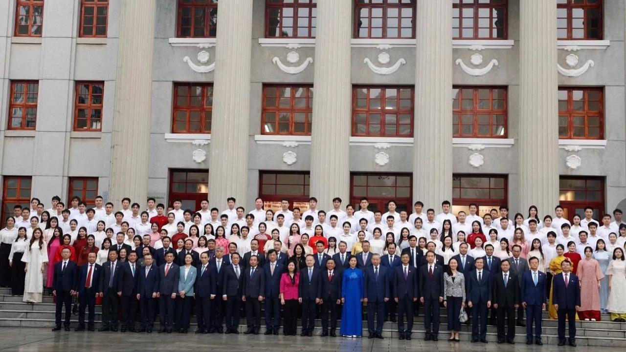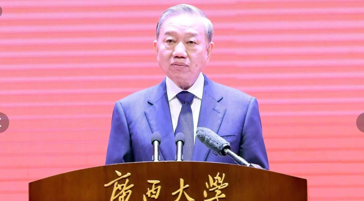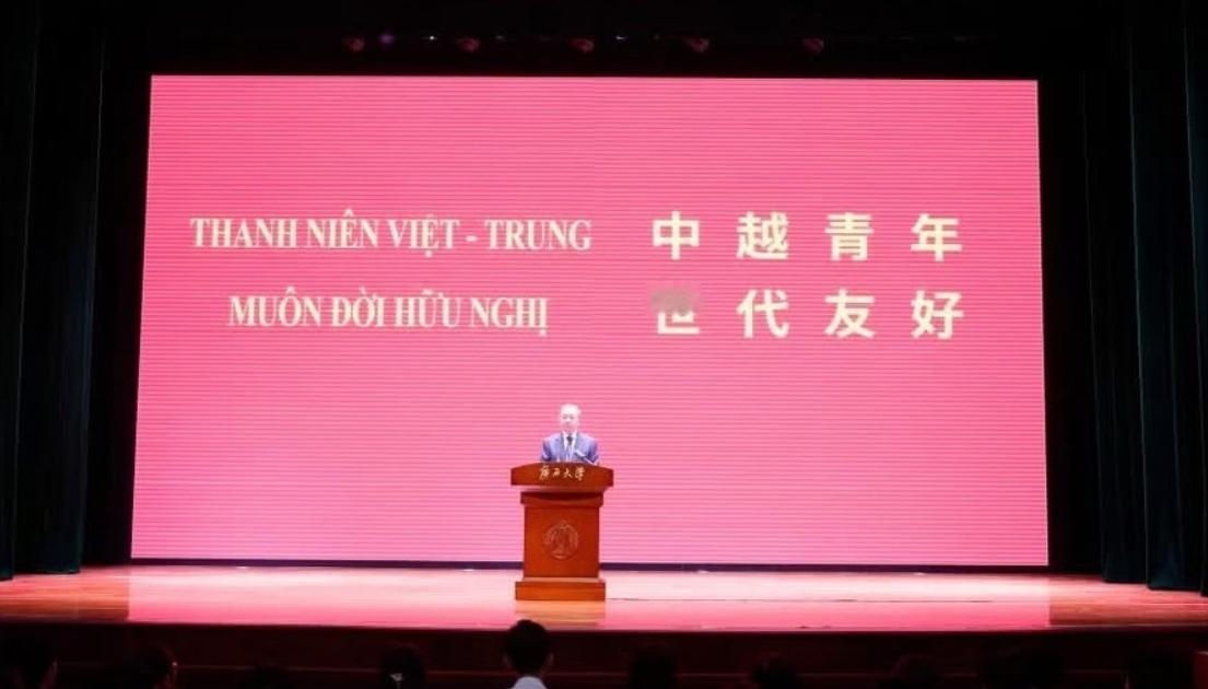 苏林启程回国前访问广西大学!4月17日上午苏林访问广西大学,还上台演讲,演讲台背景板写着“中越青年,世代友好”。 在南宁期间,苏林并没有休息,而是携手夫人去了广西大学;只见他穿着深蓝色西服系着同色系领带,一身正装尽显沉稳,还有看他头发花白,没想到精神状态如此好。 他上台演讲时非常的有威严,就是不知道台下有没有越南的留学生?希望苏林这次访华后,能推动两国的教育与学术交流,让年轻一代的年轻人成为两国沟通的桥梁,中越友谊长存!