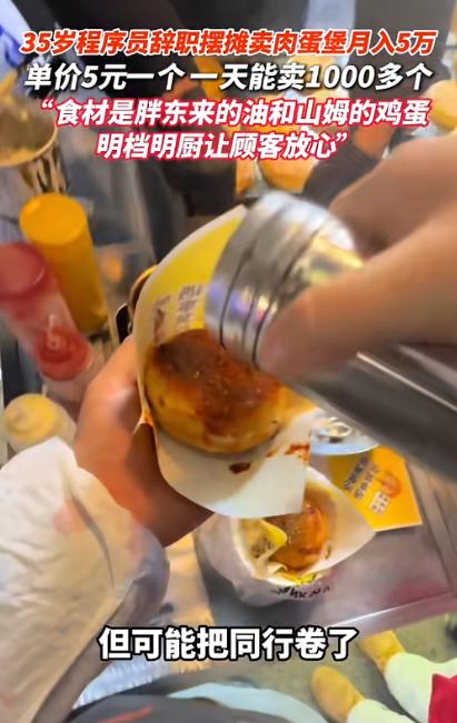 “万万没想到!”北京,一程序员因工作压力大,选择辞职,他没有继续干同一行的工作,反而开始摆摊,卖起了自己爱吃的肉蛋堡,没想到生意火爆,5块钱一个的东西,却让他月入5万左右,并且越做越大,都准备开分店了!网友:条条大路通罗马! 摊主刘大哥,曾经是北京一家互联网公司的程序员。加班、熬夜、改需求,是他过去生活的常态。他自己也说过一句挺扎心的话:“代码写得再快,也追不上需求变更的速度。” 长期高压加上作息紊乱,让他开始频繁失眠,白天对着屏幕发呆,晚上又被焦虑推着继续敲键盘。 直到某一天,他突然递交了辞职申请,办公室同事还以为他只是“崩一阵”,没想到他真的转身走了。 离职后,他没有像很多人预想的那样去做“同类岗位跳槽”,而是直接回归生活本身。他说自己一直喜欢吃肉蛋堡,大学时期就常在路边摊买一个当晚饭。 于是他干脆从最熟悉的味道开始——摆摊。 他的做法也有点“程序员思维”:鸡蛋选的是山姆会员店的稳定供货,肉饼反复测试肥瘦比例,油则用胖东来的品质标准去选。 有人笑他“用做产品经理的方式做煎饼”,他也不反驳,只是埋头一遍遍调整火候和配方。 最初摆摊的日子并不轻松。第一周几乎没人注意他,偶尔有路人停下来,也是看一眼就走。 刘大哥回忆那段时间:“比写bug还难受,至少bug会报错,这个是完全没人理你。”但他没有放弃,而是开始记录每天的销量、顾客反馈,甚至把排队时间也当作优化指标。 转机出现在一个下雨的晚上。一位短视频博主偶然路过,拍下他在雨棚下专注翻肉饼的画面,配上一句“北京程序员转行卖肉蛋堡”。视频意外爆火,评论区瞬间炸开。 有人说:“这才是现实版转型成功学。” 也有人调侃:“建议互联网公司反思一下,为什么程序员都去卖早餐了。” 还有人认真分析:“他这个供应链和品控,其实是降维打击。” 很快,摊位前开始排起长队。下班时间尤其夸张,队伍从胡同口拐到街角,外卖骑手也加入排队行列。原本5元一个的肉蛋堡,几乎成了附近写字楼的“情绪补给站”。 刘大哥也明显忙了起来。他不再只是一个人守摊,而是雇了两名帮手,甚至开始规划出餐流程:打蛋、煎肉、夹饼、包装,每一步都被拆成标准动作。 他说这其实和写代码很像,“就是把复杂事情拆成模块。” 随着生意越来越稳定,有人估算他一个月净收入接近5万元,还在持续增长。更有投资人通过朋友找到他,提出想帮他开分店,但他没有急着答应,只说再观察一段时间。 这件事在网上持续发酵后,争议也随之而来。有人羡慕:“早知道我也辞职去卖吃的。” 也有人冷静提醒:“流量是短期的,摊位能不能复制才是关键。”还有同行程序员感慨:“不是每个人都能从代码跳到铁板摊,还刚好成功。”