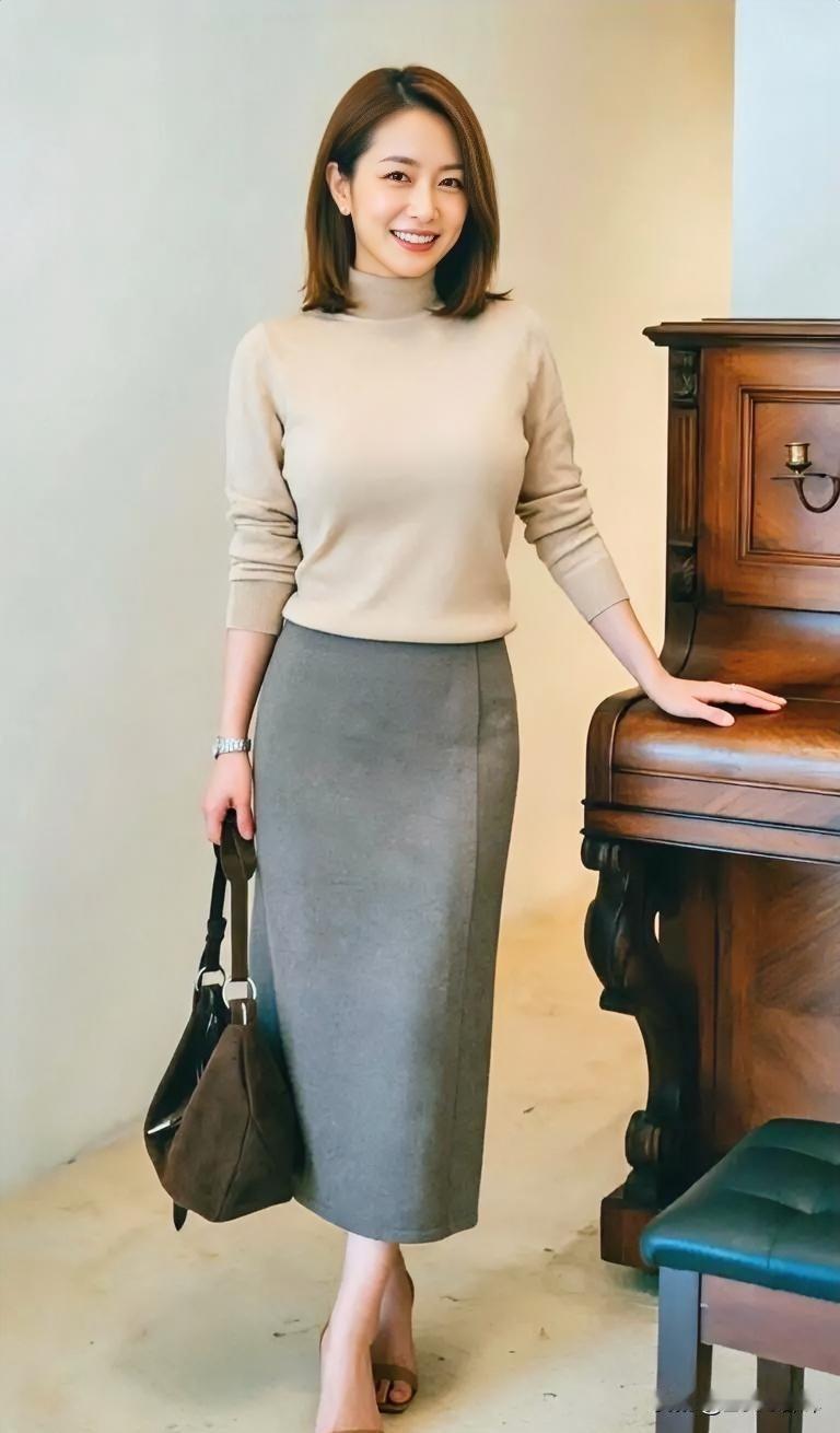 米色温柔,拥抱颈间暖意。 灰裙垂落,如诗行般优雅。 她倚钢琴,指尖轻触时光。 手提包静默,盛满日常浪漫。 光影流转,勾勒从容姿态。 美在简约里,是生活也愿驻足的风景。