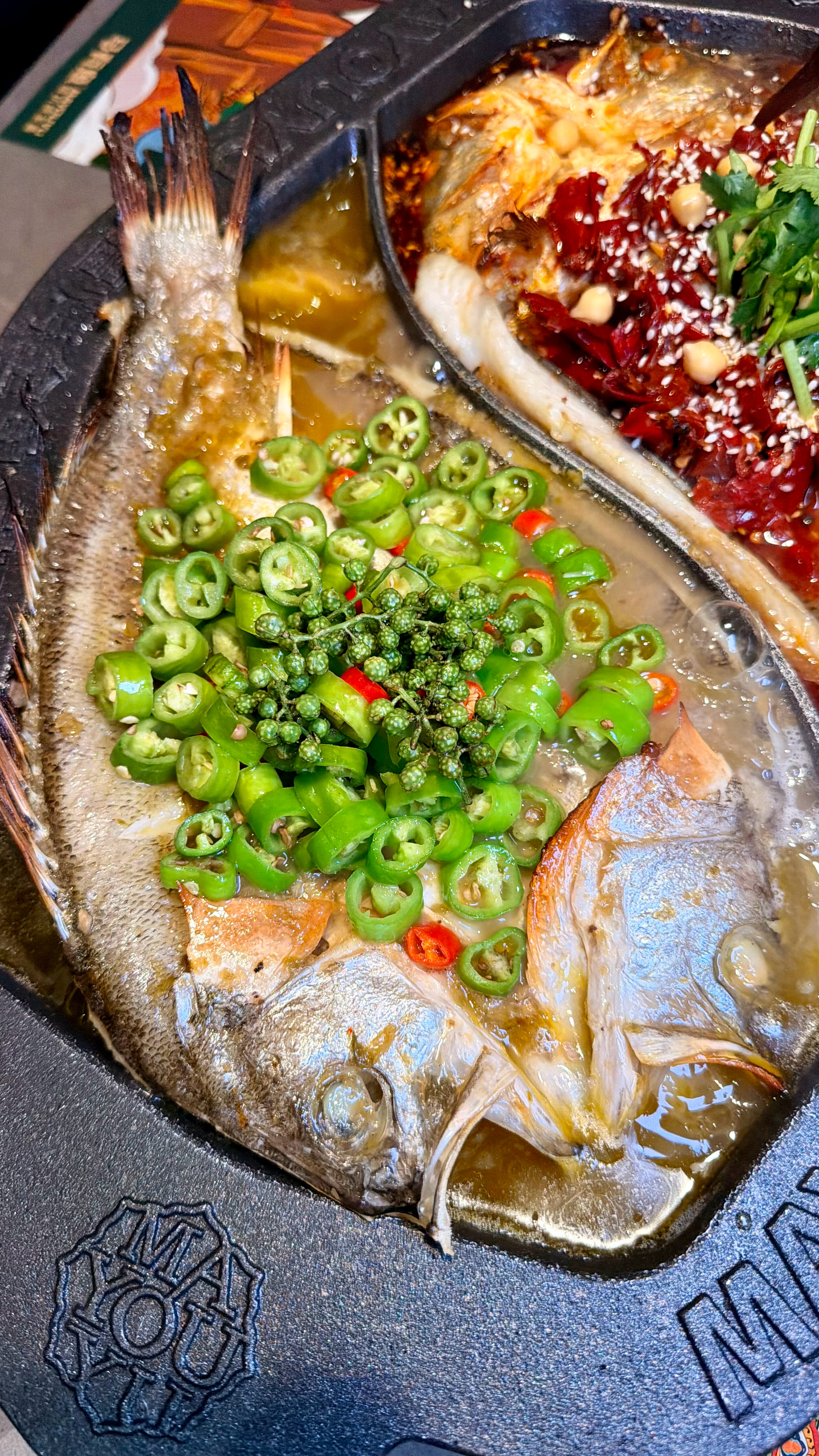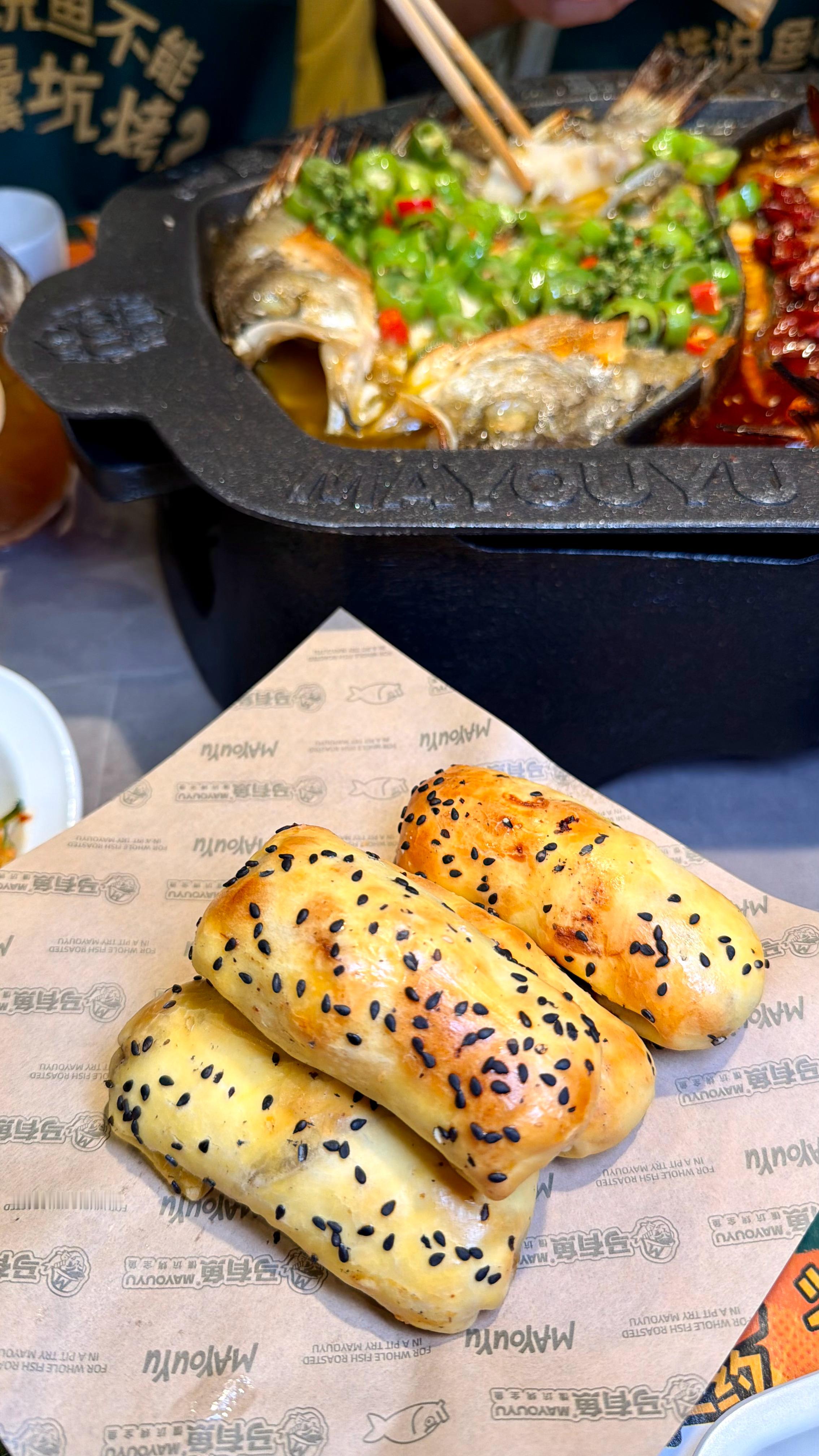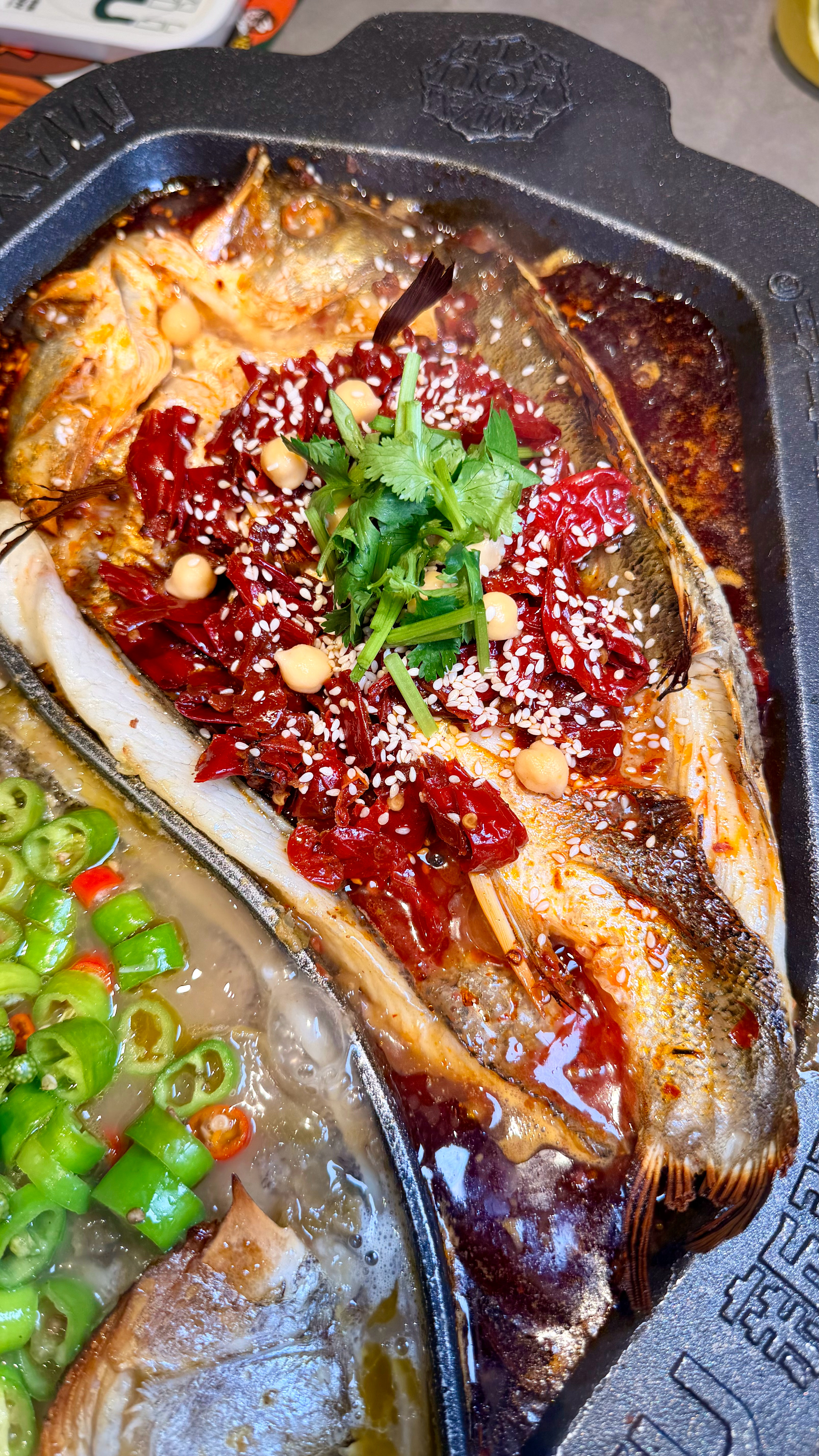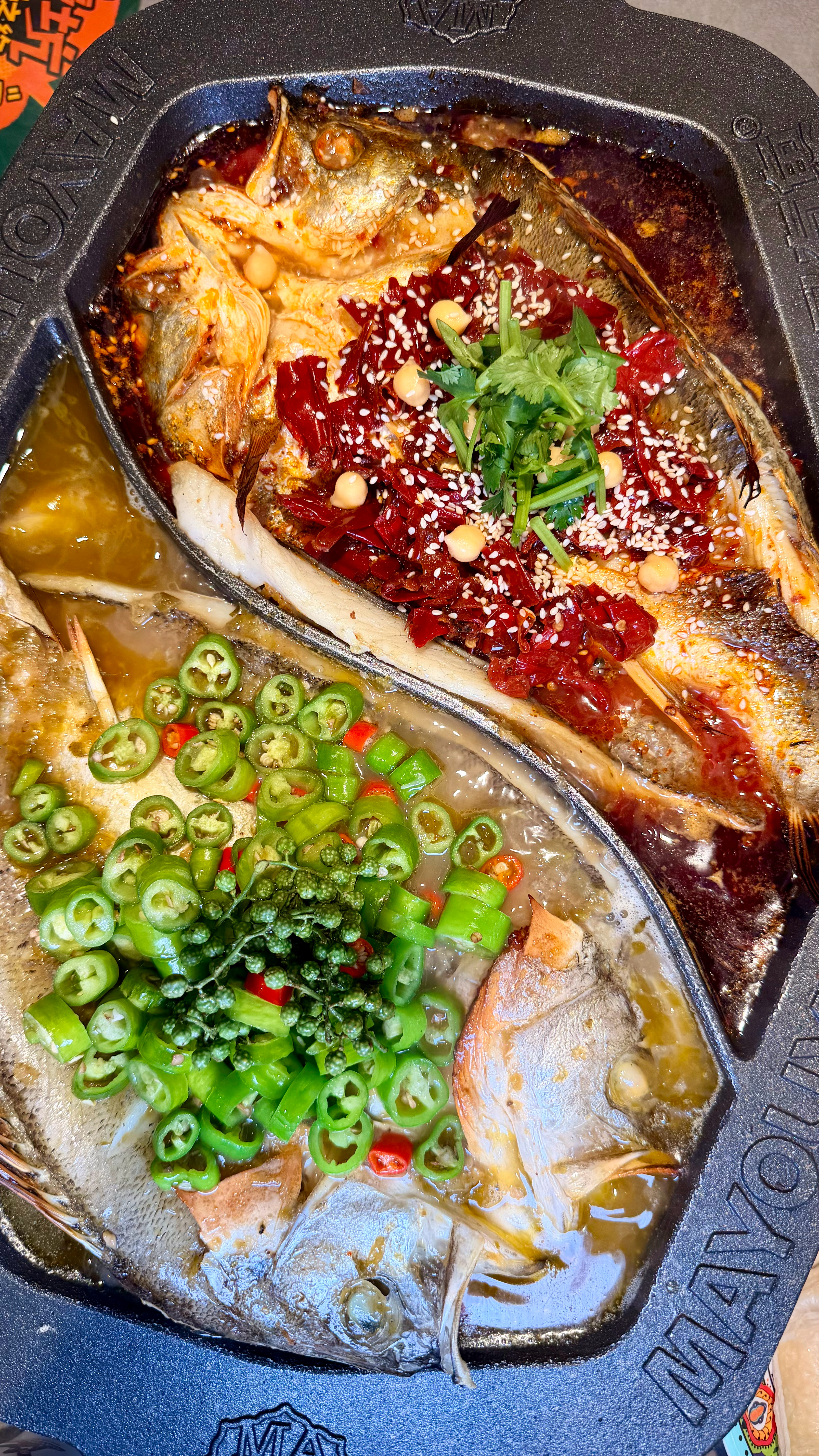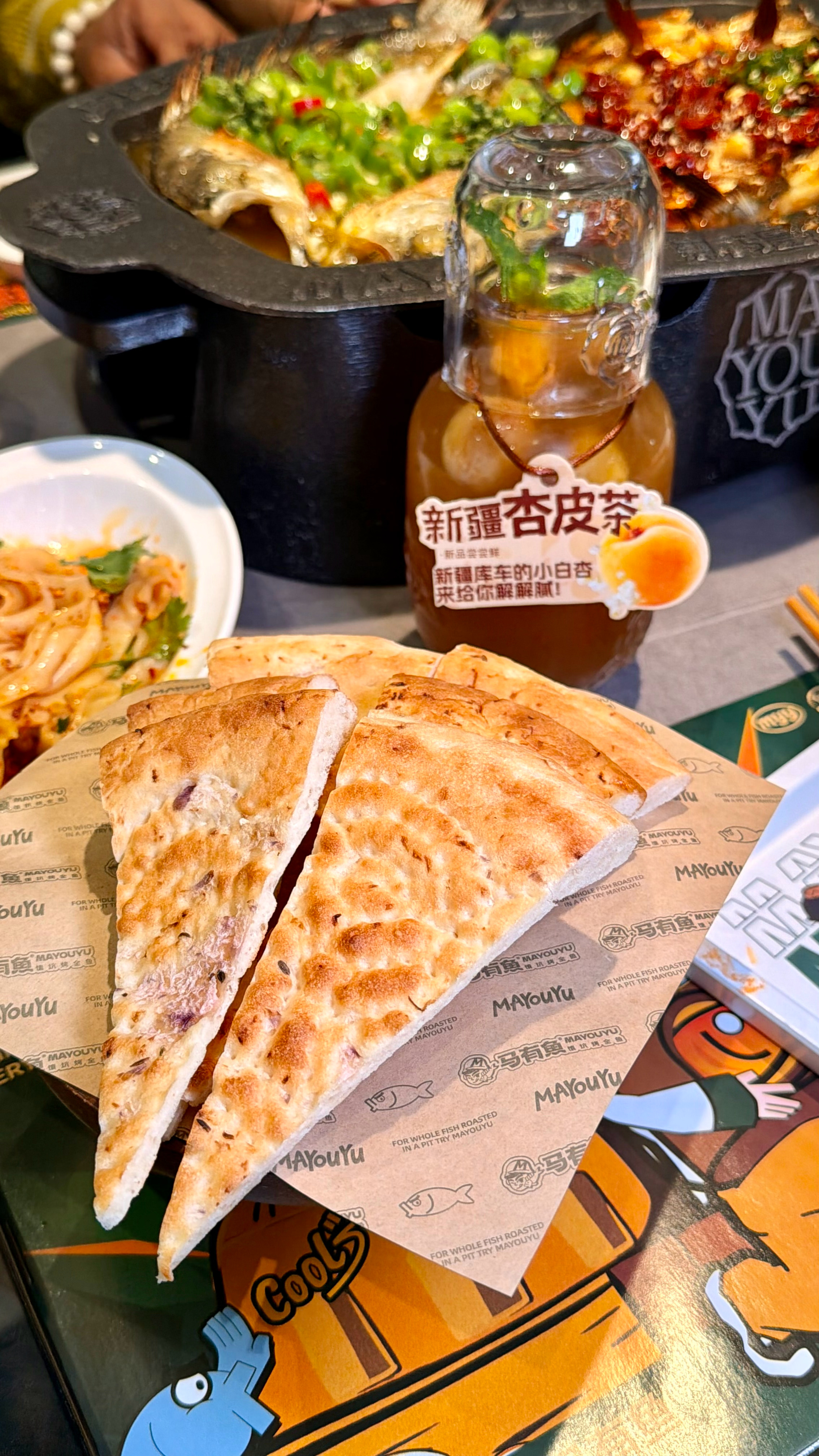 在丽江终于有好吃的馕坑烤鱼了🐟作为在云南15年的丽江民宿掌柜+纯玩旅游人,今天来逛商场见这家人气超旺,没抱期待进来试试。鱼是馕坑现烤的鲈鱼,明厨看得见,点了辣皮子+青花椒双拼,香气扑鼻,外焦里嫩超下饭。三炮台、凉皮、炒米粉、烤包子、馕、树莓粽子样样地道,还有新疆姑娘跳舞助兴。丽江烤鱼不少,但环境、口味、服务都在线的,真心推荐这家。豆花名宿吃货团丽江美食云南旅游攻略君 丽江·清真·马有鱼馕坑烤全鱼(丽江国际购物中心店)
