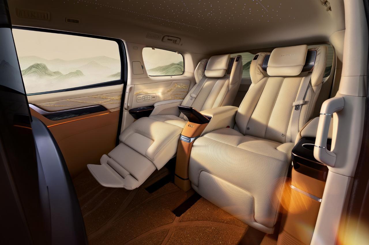 别克世纪CENTURY焕新登场,升级很实在,从外观到座舱都能找到亮点。 4月28日正式发布并上市,会公布价格和完整配置,咱先简单过一波已知信息: 1.外观更有东方气场,从山水画作、古建筑找灵感,四座版专属关山飞雪双色车身,取自文徵明名画。还有飞檐展翼灯组、淬金华彩纹饰、金标和织金华盖轮毂,气场超高。 2.上车就有仪式感,行业首创一键礼宾模式,开门时二排座椅自动前移,上下车更优雅从容,把旗舰体验做到了细节里。 3.二排变理疗级“宝座”,12 层复合结构座椅,用Fine Nappa半苯胺真皮,配上22点指压按摩+石墨烯理疗,入座去堪比SPA。 4.私密座舱,座舱隔断+ 32吋可升降大屏,一键切换私密/开放模式,商务休息都合适。还有全球首款后排专属BOSE悦尊音响,外加13.6万针手工江山刺绣、羊毛山水脚垫、星河星空顶,移动豪宅范儿。【来自懂车帝车友圈】