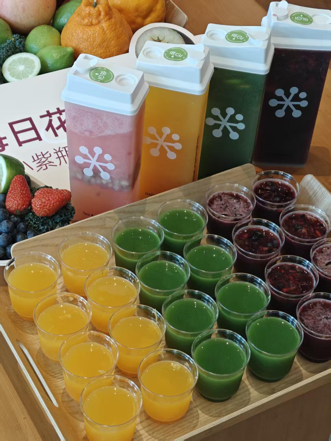 当果茶重新进入养生赛道,奈雪显然已经不再满足于苦瓜和羽衣甘蓝的高光搭配,最新的纤果茶系列。严选低GI鲜果🍇🍊🍐如莲雾、云南蓝莓、当季蜜橙等,果肉超足✨,每一口都能喝到满满的膳食纤维🥗,瘦瘦小绿瓶从此便有了更多口味,茶香与果香交织,清甜不齁🈚负担😋,盲选也能找到饭后搭子[666]