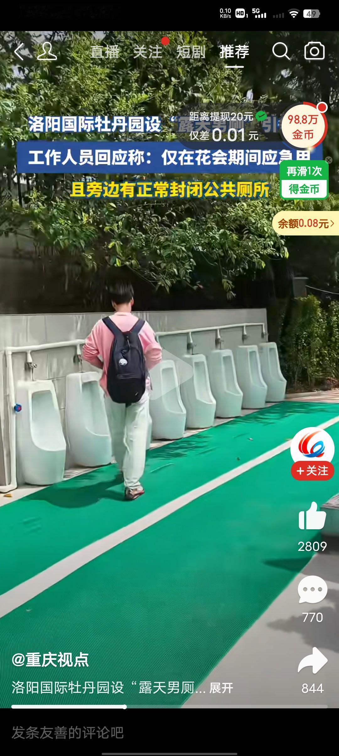 洛阳国际牡丹园设“露天男厕”引争议! 4月13日有网友反映河南洛阳国际牡丹园设“原生态男厕所”,视频中显示一排露天小便池。 14日园区工作人员回应:那个是应急用的,不是没有墙壁遮挡,只是没有棚顶,在机场限飞范围内的,任何的无人机都是不能起飞的,该设施仅在牡丹花卉期间人流高峰期临时启用,园区内有本身有封闭型公共厕所,游客可自主选择如厕点。 有网友说有个厕所就不错了,你们男士不都是上厕所随便的吗?有时候路边的草丛就能解决,这已经不错了,给你个找了一个特定的位置,真的是原生态呢! 你觉得这个原生态的男厕设得有意义吗?