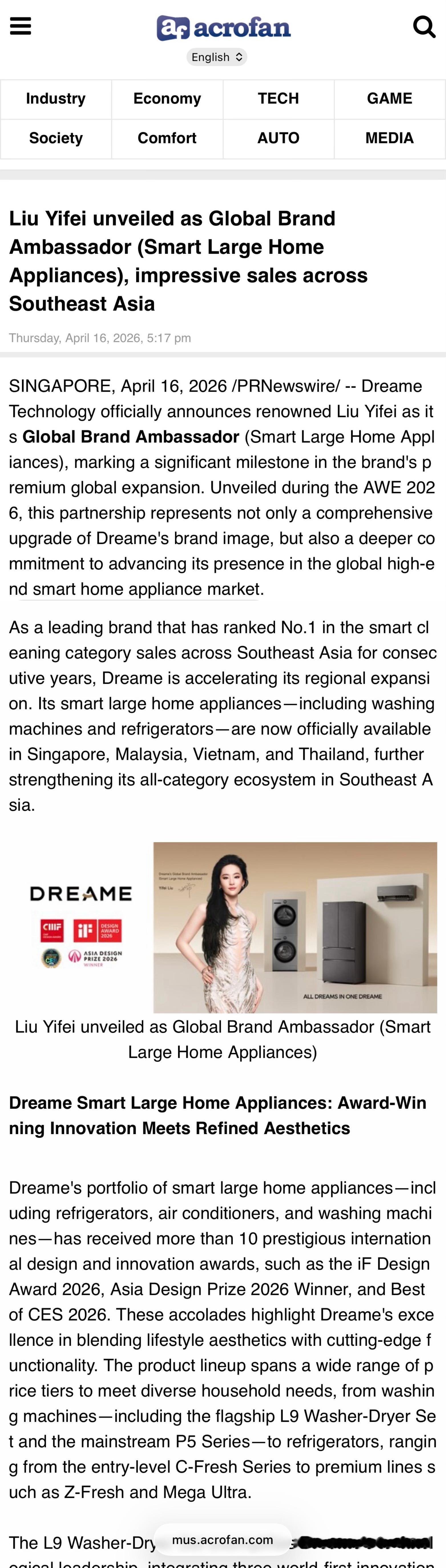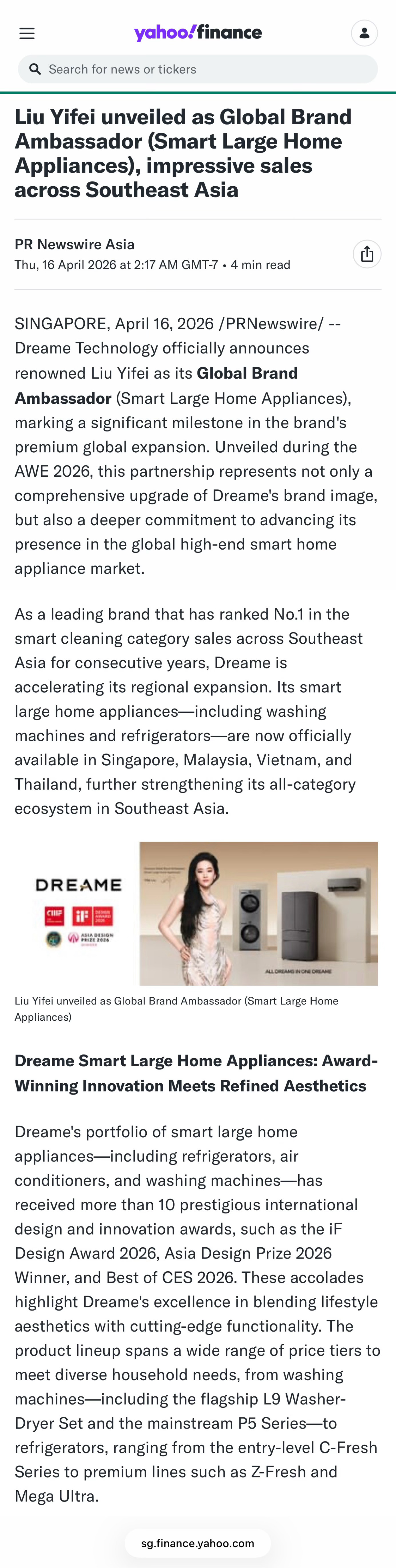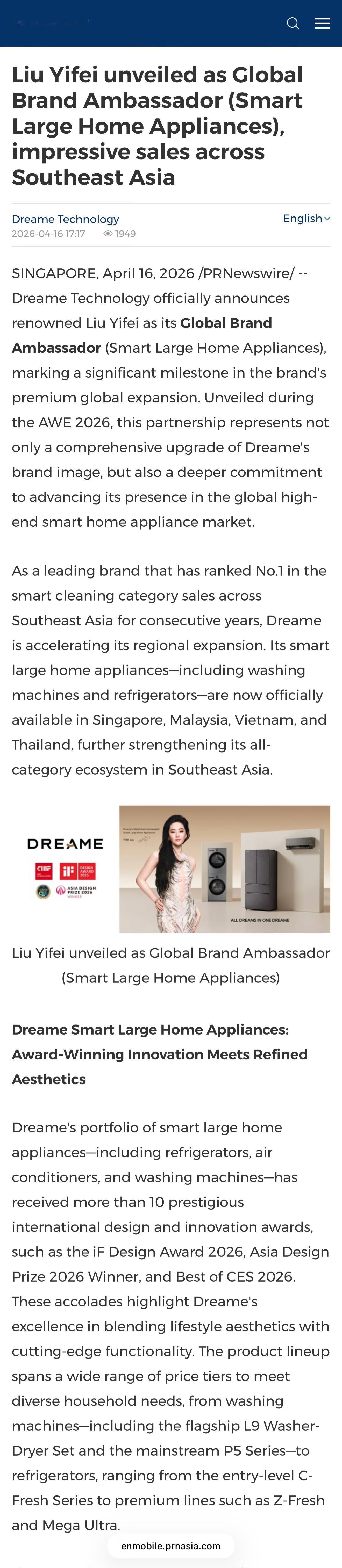 刘亦菲 lyf 刘亦菲追觅全球品牌代言人(智能大家电) 追觅Dreame官宣刘亦菲成为全球品牌代言人全球媒体报道不完全统计:Yahoo Finance、The Manila Times、PR Newswire、Acrofan我看刘亦菲就这样姨母笑