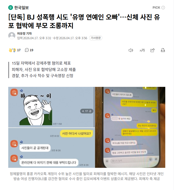 【试图性侵网络女主播的韩国“著名艺人哥哥”,曾威胁散布受害者身体照片并嘲讽其父母】海外新鲜事热点现场