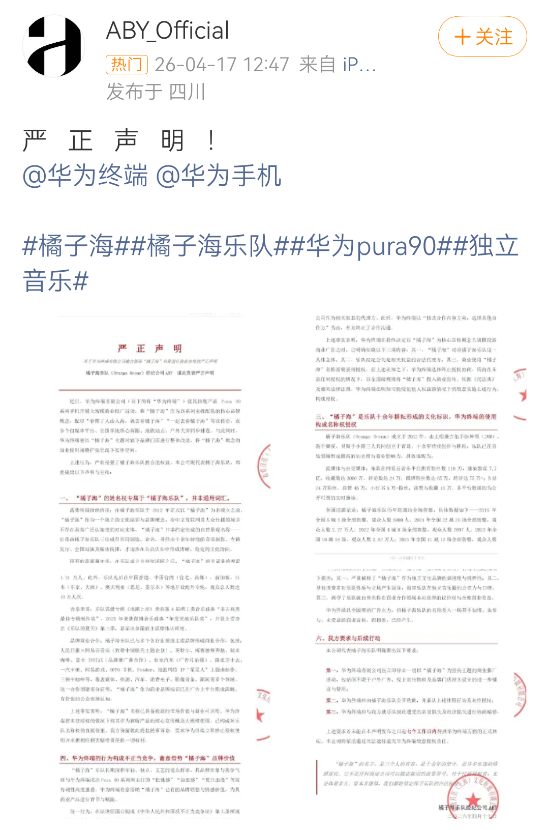 橘子海乐队称华为侵权啊?不是,这也能蹭??看评论区直接给我看笑了,网友建议连南澳
