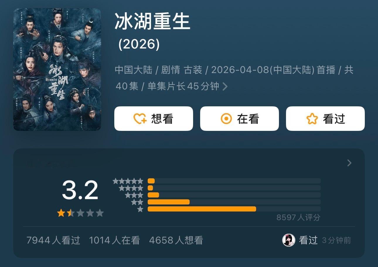 冰湖重生豆瓣开分3.2,无论分数还是评分人数都让人震惊😱