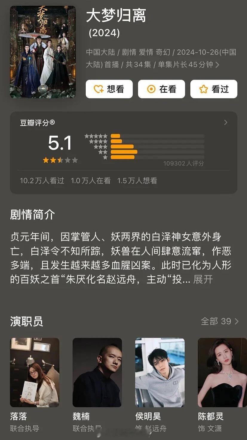 小四的作品口碑一览无余近几年几部:月鳞绮纪5.3分,大梦归离5.1分,云之羽6.3分