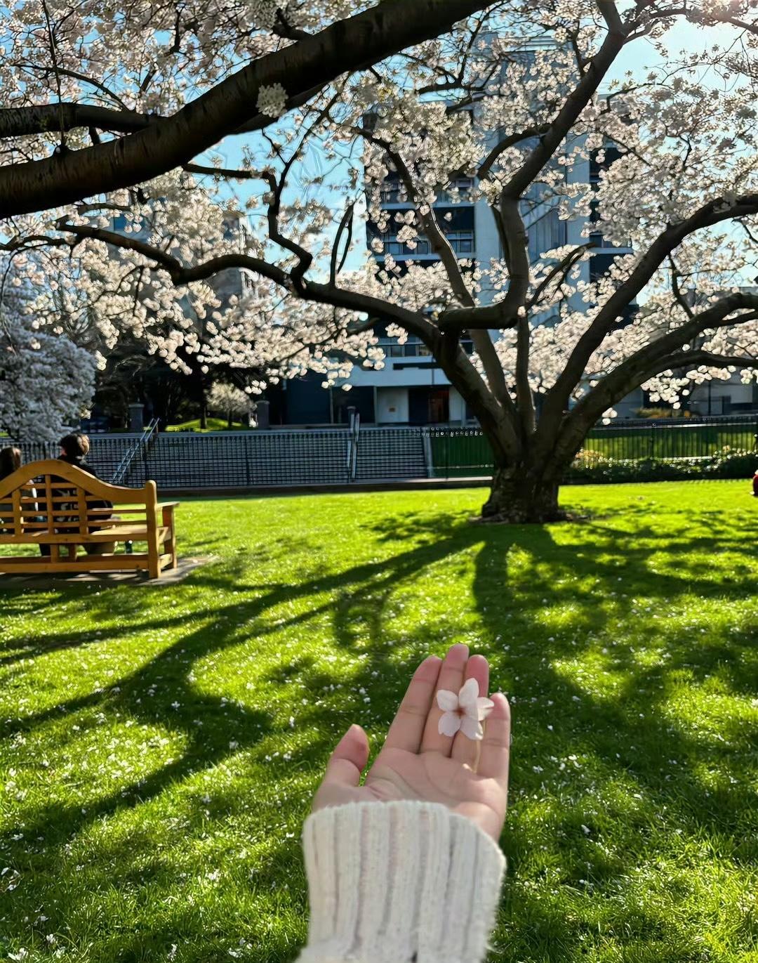 在绿意盎然的公园里,甜美少女轻轻托腮,宛如童话中的公主。🌿💕