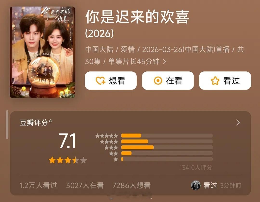 你是迟来的欢喜豆瓣开分了 7.1 这个成绩算还行吗?