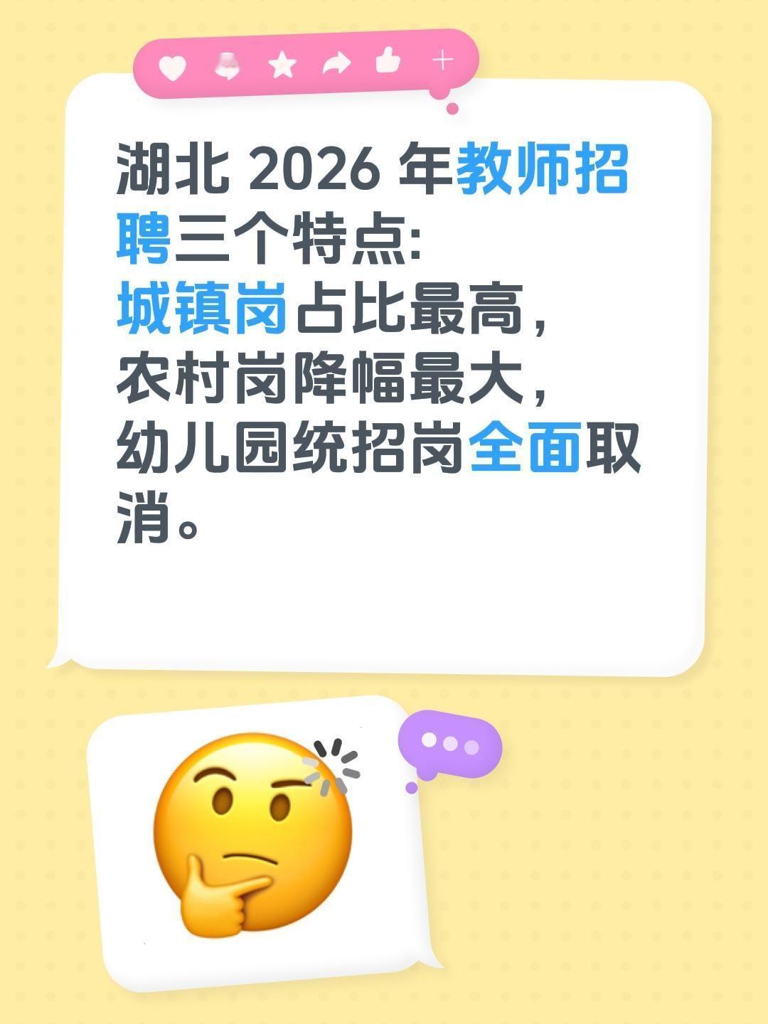 湖北 2026 年教师招聘三个特点: 城镇岗占比最高, 农村岗降幅最大, 幼儿园统招岗全面取消。