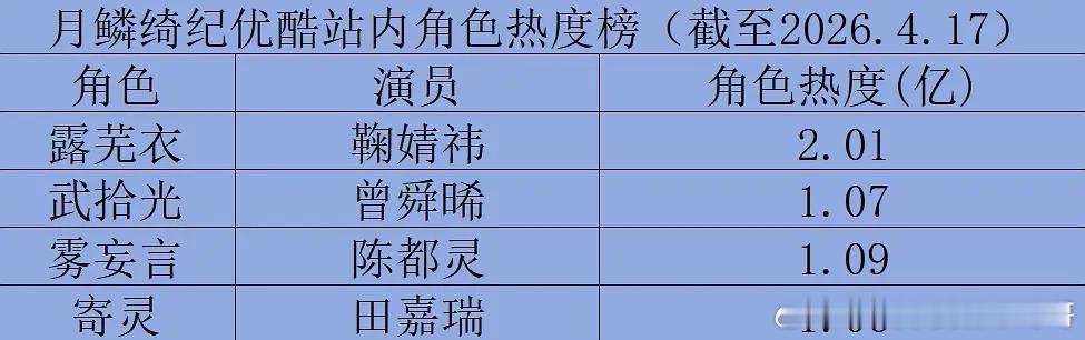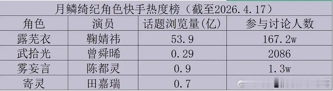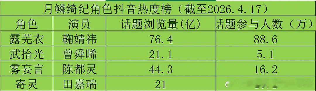 月鳞绮纪主演各平台数据:鞠婧祎、曾舜晞、陈都灵、田嘉瑞