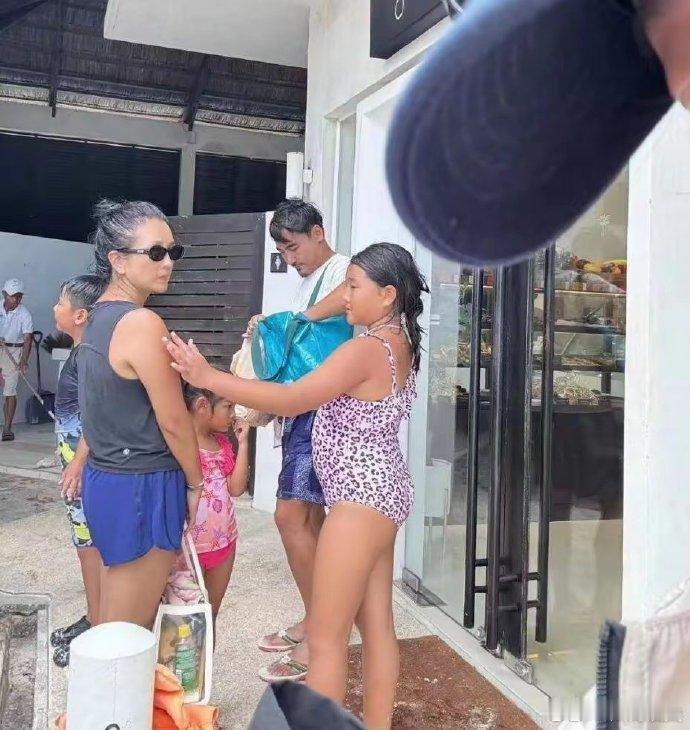 何洁一家五口泰国度假,38岁的她满头白发,两女儿颜值身高差太大