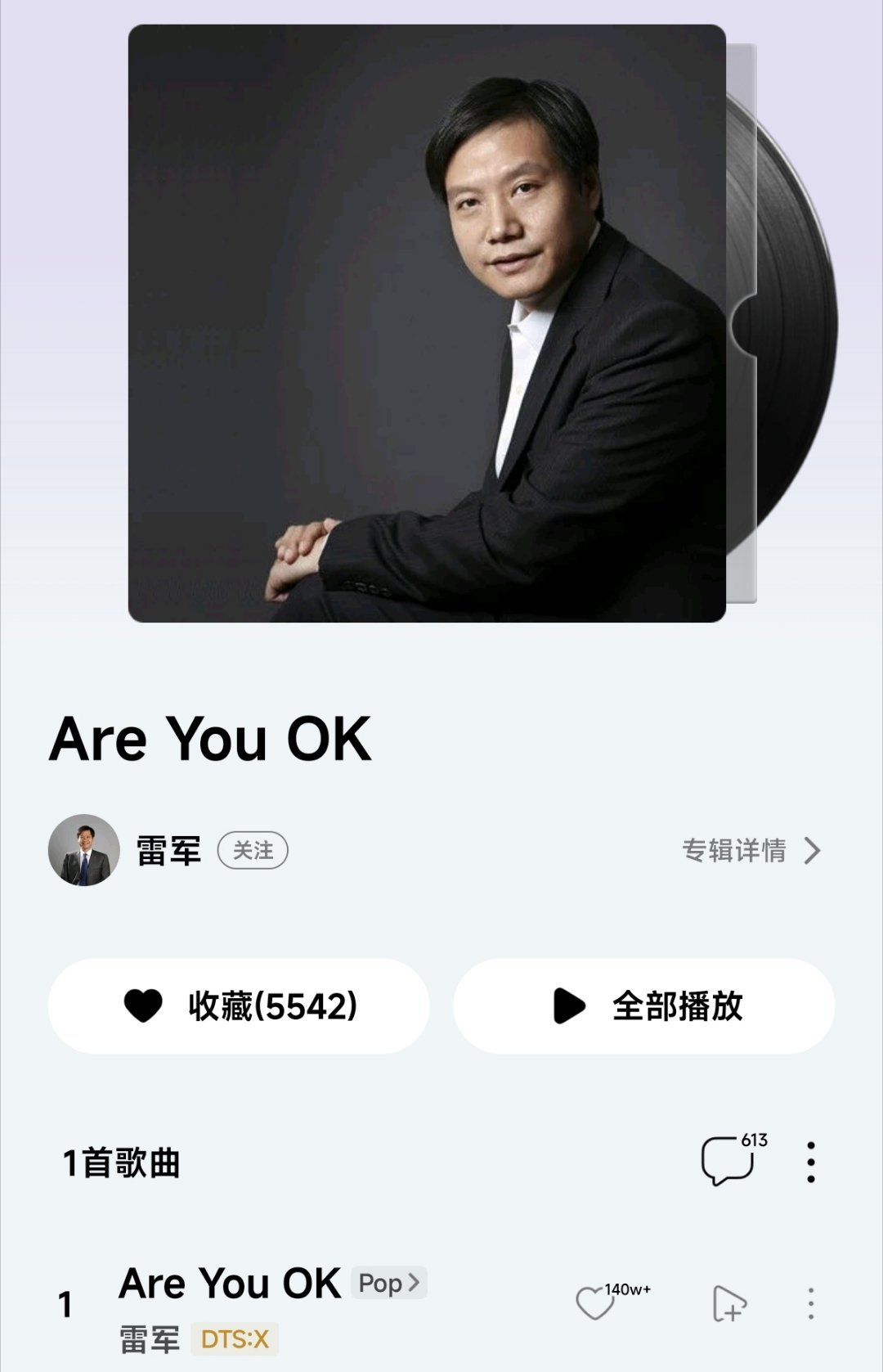 雷军问直播放歌有没有版权问题可以放《areyouok》