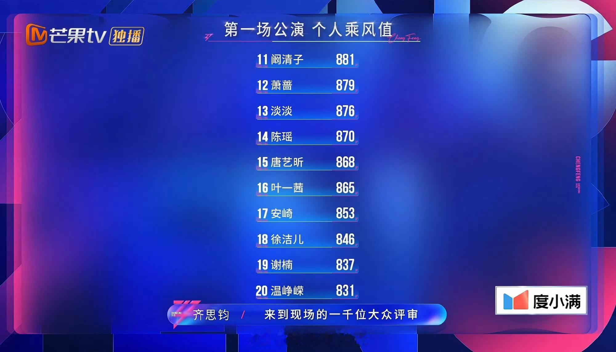 徐梦洁一公排名徐梦洁一公第8名,比初舞台小掉了几位,但在31个姐姐里依然稳稳前排~《霍元甲》那个舞台难度肉眼可见,表现其实挺可的。稳住继续冲~乘风2026