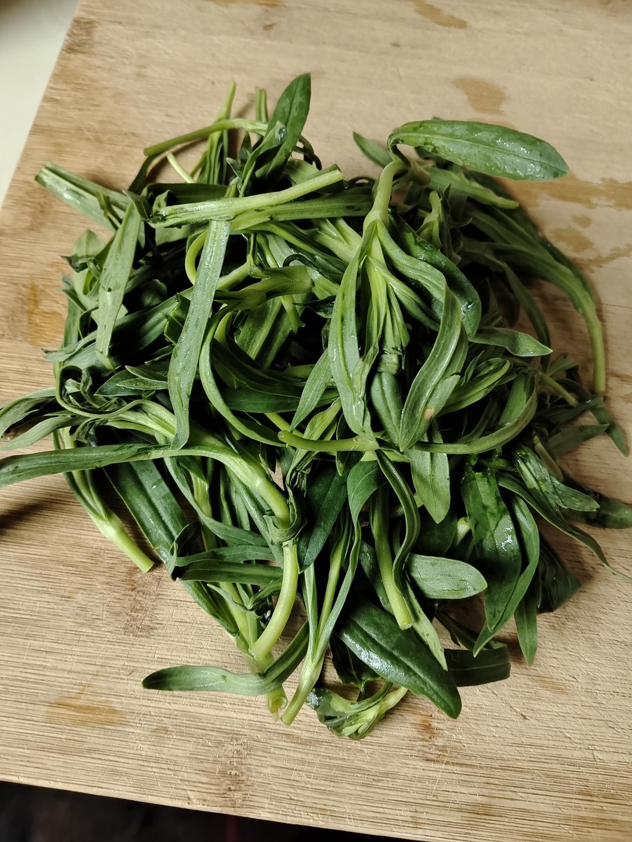 前两天去买菜,我看到商场里面卖一种野菜,是我所没有见过的。我就问服务员这是什么菜。 服务员说是面条菜,可以煮面条吃,也可以包饺子吃。我因为新鲜,就想买点来尝尝。 这个野菜也不贵,3块钱一斤,我就给雇主大姐说,买一斤包野菜饺子吃吧,大姐就买了一斤。 买回来放冰箱好几天了,都没顾上吃它,今天下午我把面条菜焯水后剁碎,又切了一点肉馅,包了一顿饺子吃。 我和大姐两个人,我包了32个饺子,煮出来,晾在三个盘子里,我想一人一半,刚好吃完。 我觉得味道还不错,把我的那一盘一口气吃完了。可是大姐只吃了五个就不吃了,她说这野菜饺子不如白菜和韭菜饺子好吃,她不爱吃。 好心好意的想为大姐改善一下口味,没想到她竟然不喜欢吃。她这两天牙疼,昨天修了门牙,今天中午吃排骨的时候,又让排骨咯噔了一下槽牙,下午牙疼的心情不好,这晚上的饺子也没有吃高兴。真让我心里十分愧疚。