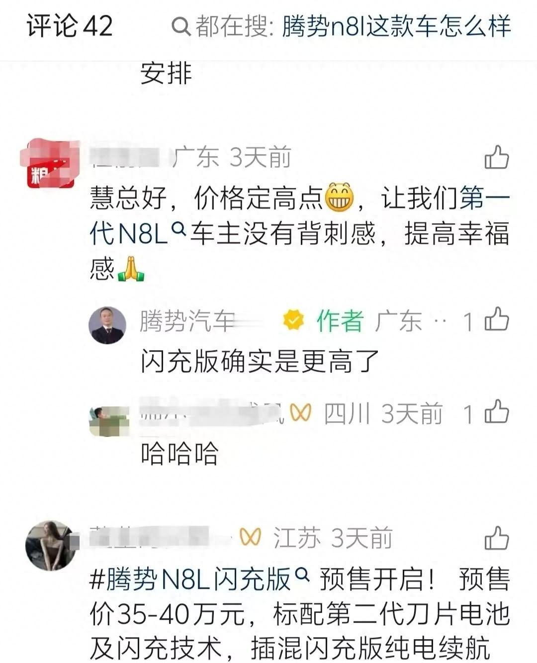“求你把价格定高点。”这话不是销售说的,是车主追着总经理喊的。 一位广东的腾势N8L老车主给总经理李慧留言:希望新款闪充版卖贵点,别让我们第一批车主心里难受。李慧回得也爽快:闪充版定价确实更高了。 你看数据就知道了。老款N8L去年10月才上市,29.98万到32.98万。也就过了四个月,闪充版预售价直接拉到35万到40万,入门门槛涨了五万多。 老车主算完账说心凉了。不是不支持国产,是两三个月前刚提的车,转眼就成了旧款。去年12月这款车卖了6510辆,到今年3月就变成了1148辆。 问题出在哪儿?技术确实在飞。第二代刀片电池上车,电池从46.9度跳到75.26度,续航从230公里飙到430公里,充电5分钟能从10%充到70%。这是真本事。 但第一批车主的心情也得有人懂。厂家第一时间响应,推出了补偿方案,还在根据用户反馈持续优化。这种重视老用户的态度,在行业里其实不多见。 说白了,这不是哪一家的事。整个新能源赛道都在提速,换代周期从两三年压缩到半年。技术跑得快是好事,但怎么让先上车的人也坐得舒服,这个题还得好好解。 腾势今年要发12款新车,还要进欧洲市场。中国品牌往上走,靠的是硬实力,也靠对每一位车主的用心。你觉得,新款定多少合适?如果是你,会等还是先买?