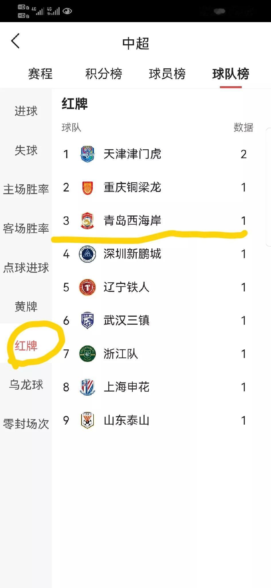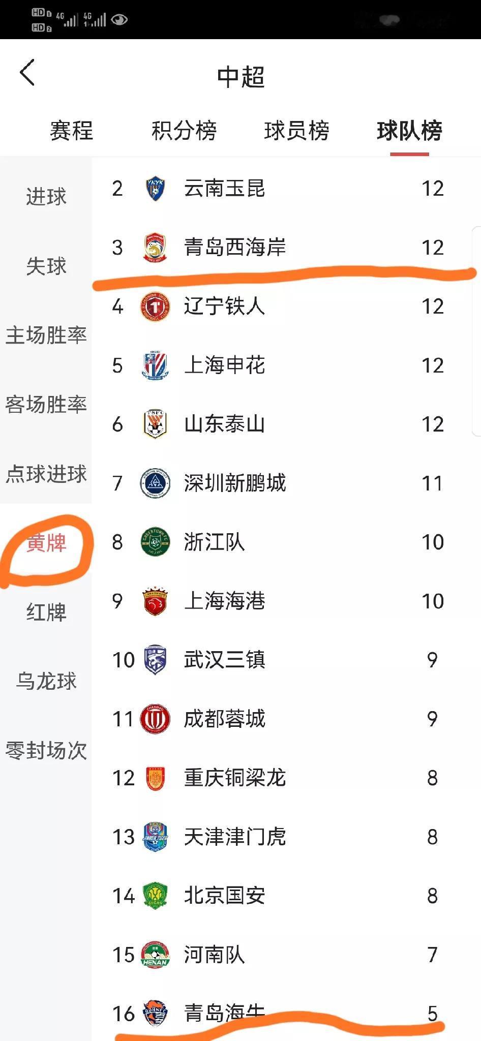 同城德比之战 青岛西海岸犯规数令我大吃一惊 今天晚上将上演青岛海牛和青岛西海岸的同城德比之战开打之前,我特意看了一下双方的犯规数,令我大吃一惊。 倒数第二的青岛海牛犯规数竟然比青岛西海岸少不少。 红牌数,青岛海牛没有,而青岛西海岸有一张,是上一轮和辽宁铁人队的比赛中丁海峰背后飞踹直接红牌罚下。 黄牌数,也是青岛海牛比青岛西海岸少。 青岛西海岸黄牌得了12张,和云南玉昆黄牌数相同,仅仅比黄牌数第一的大连英博队的14张少两张。 而青岛海牛却只有张区区5张黄牌,是五轮联赛赛罢黄牌数最少的球队。 从两队的比赛红牌数能够看到,虽然青岛海牛成绩差(但都是一胜一平三负),但比赛踢的还是张弛有度,动作规范。反观青岛西海岸队,这犯规数有点太多。 这样多的红黄牌,对青岛西海岸后续比赛会有致命影响。 犯规数,这恐怕也是这场德比之战一大重要看点。