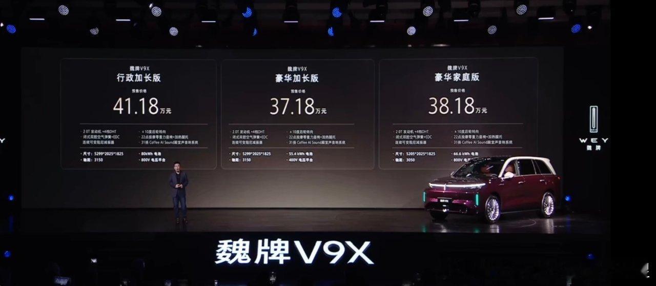 长城全能旗舰 魏牌牌 v9x 价格发布 大家觉得如何昨天我去路过还看了一眼实车电压在399v 前100后240kw样子挺好看的