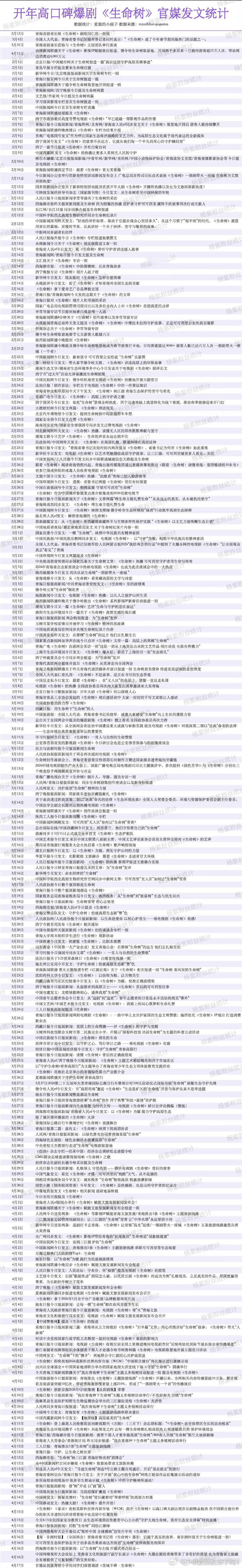 给你们看看,这才是官媒该发的正片文章📃,杨紫生命树官媒发文统计,好牛🐮的一部剧。