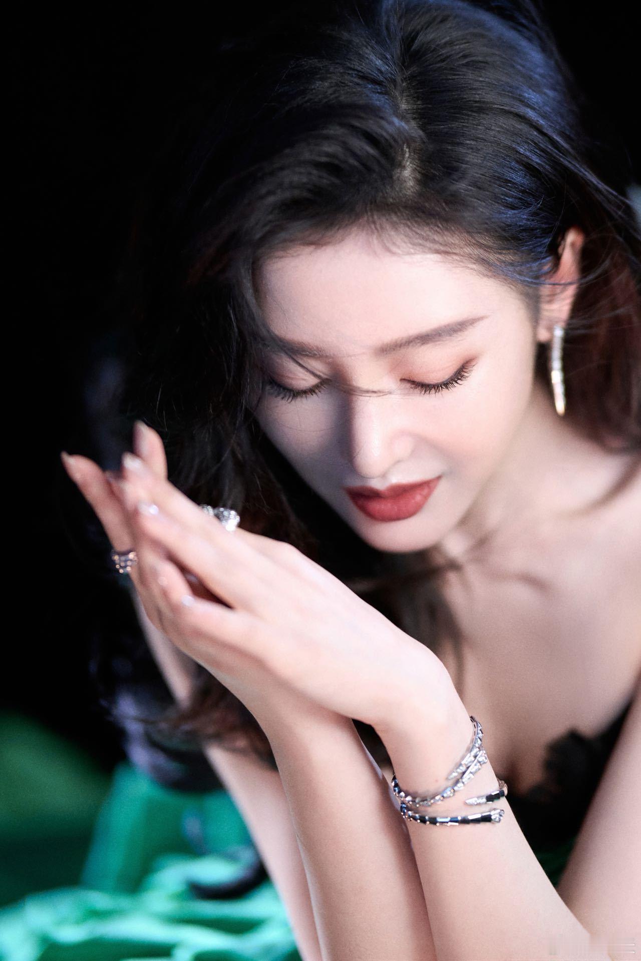 北京国际电影节这波造型太绝!🔥一袭墨绿丝绒长裙亮相,将奢华与性感完美融合。修